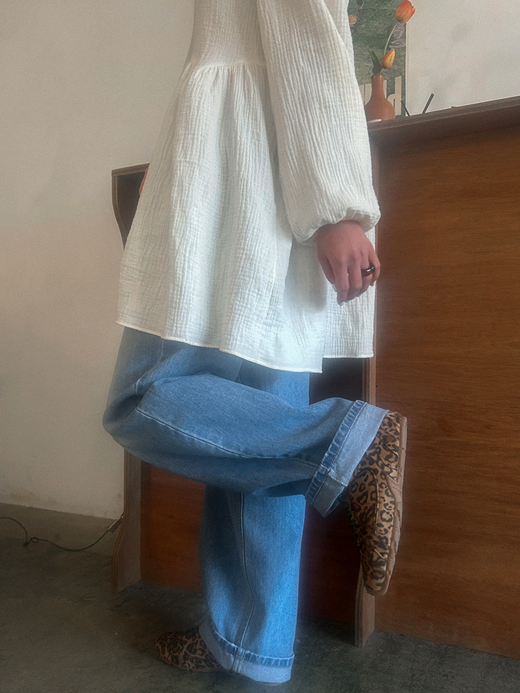 - 데님 소재 및 컬러감이 강한 의류의경우 밝은 소재(의류,가방,슈즈)와 함께 착용시 이염 가능성이 있을 수 있으니 주의하여 주세요.