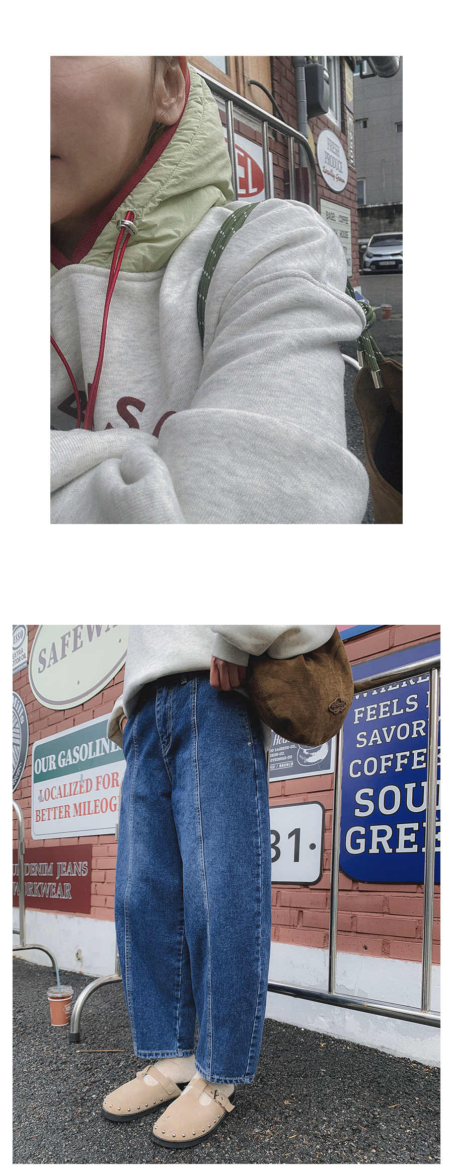 - 데님 소재 및 컬러감이 강한 의류의경우 밝은 소재(의류,가방,슈즈)와 함께 착용시 이염 가능성이 있을 수 있으니 주의하여 주세요.