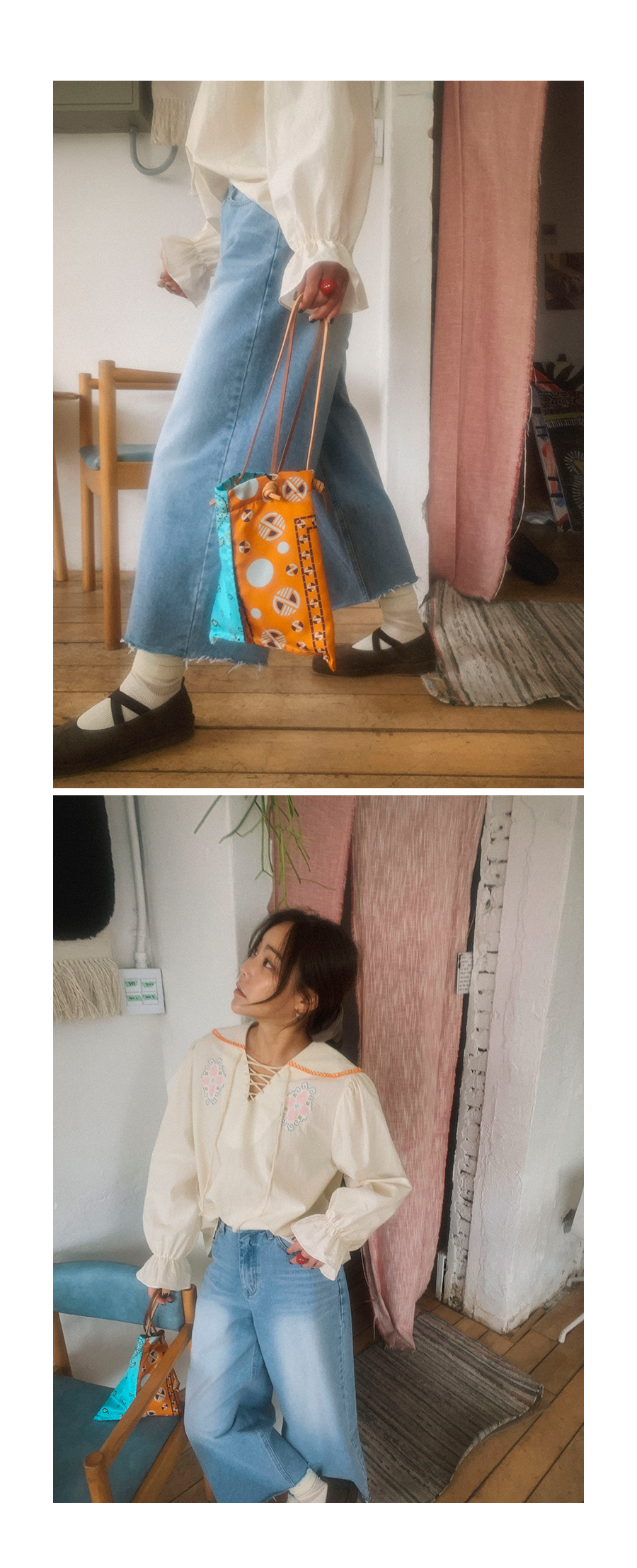 - 데님 소재 및 컬러감이 강한 의류의경우 밝은 소재(의류,가방,슈즈)와 함께 착용시 이염 가능성이 있을 수 있으니 주의하여 주세요.