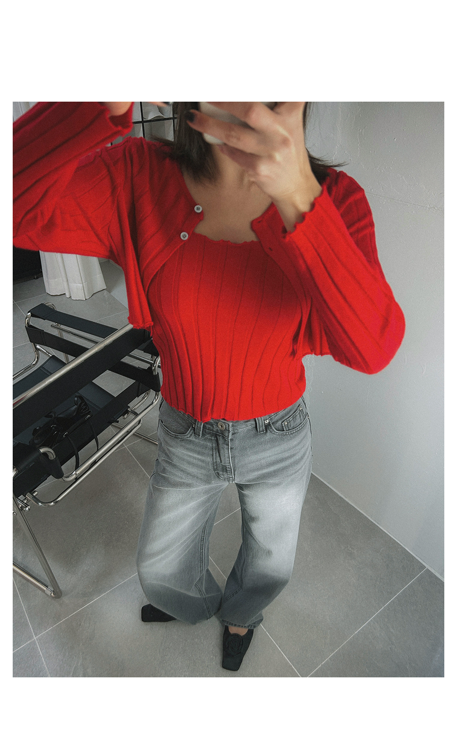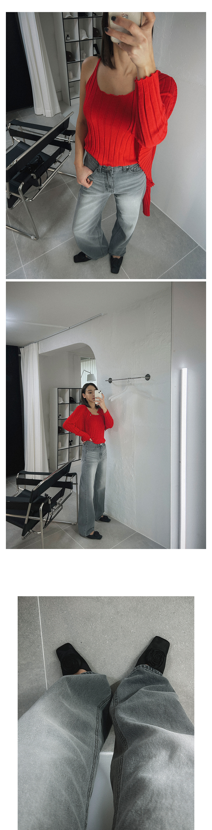 MODEL_HEIGHT 163cm l WEIGHT 45kg l TOP 44-55size l BOTTOM 26inch l SHOES 230mm