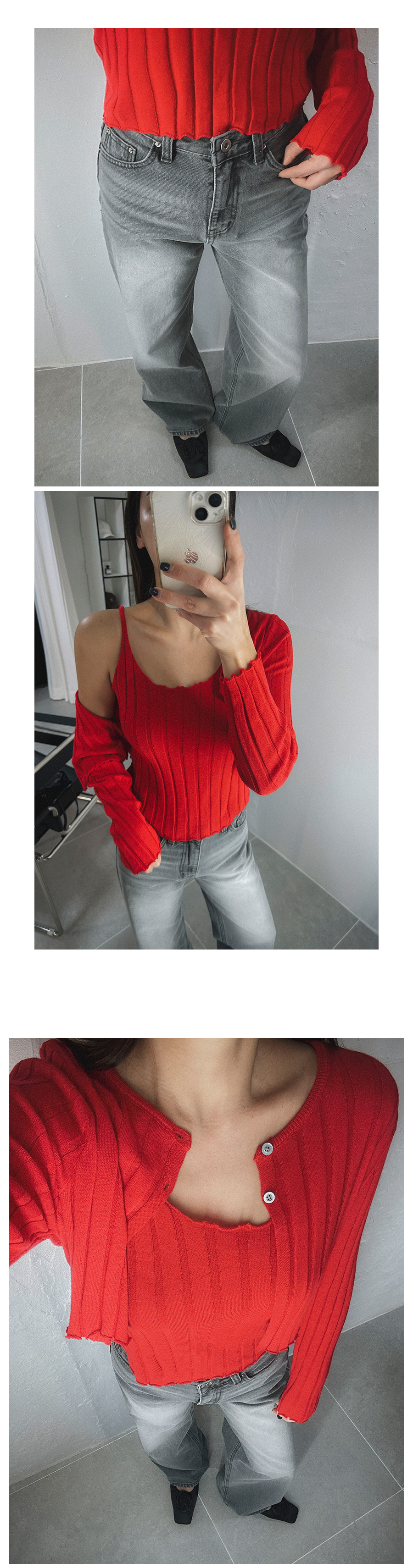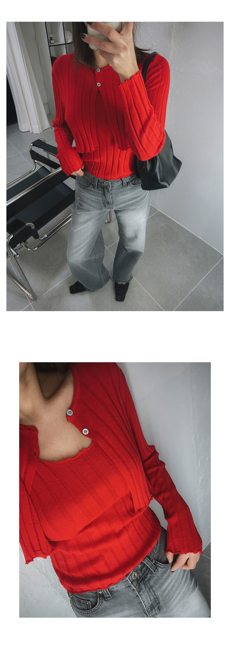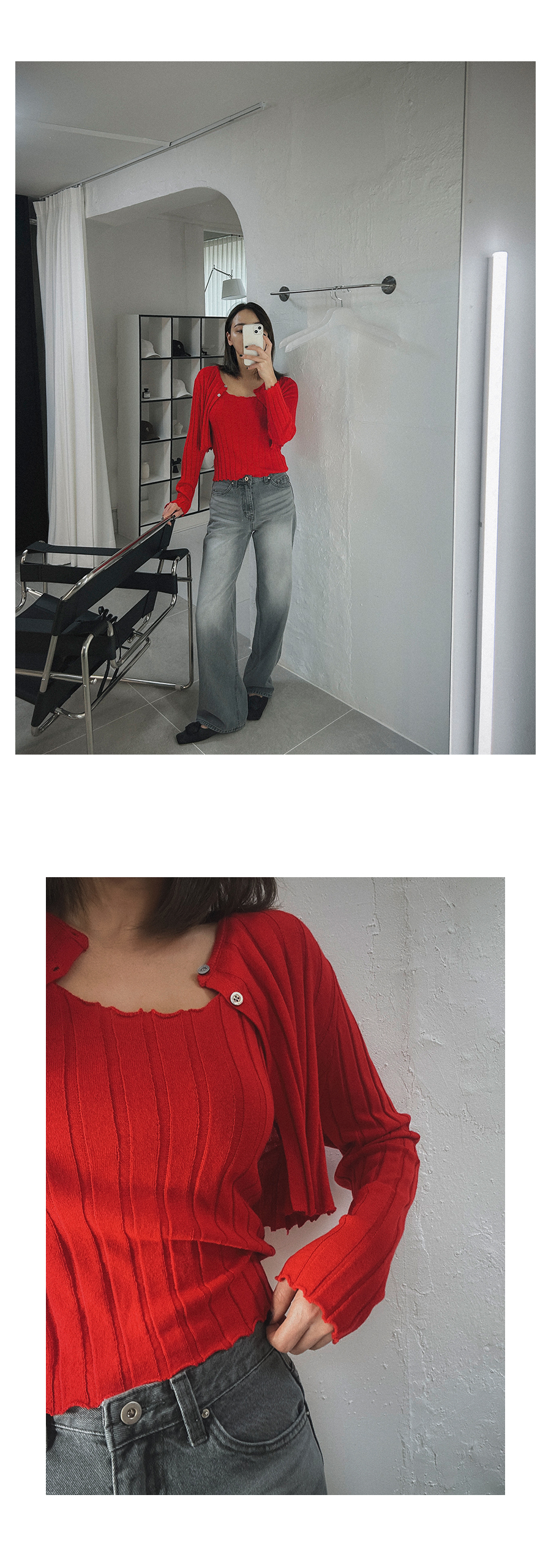- 단추구멍이 작은 부분의 경우, 단추에 맞게 쪽가위로 터주셔서 착용부탁드립니다.