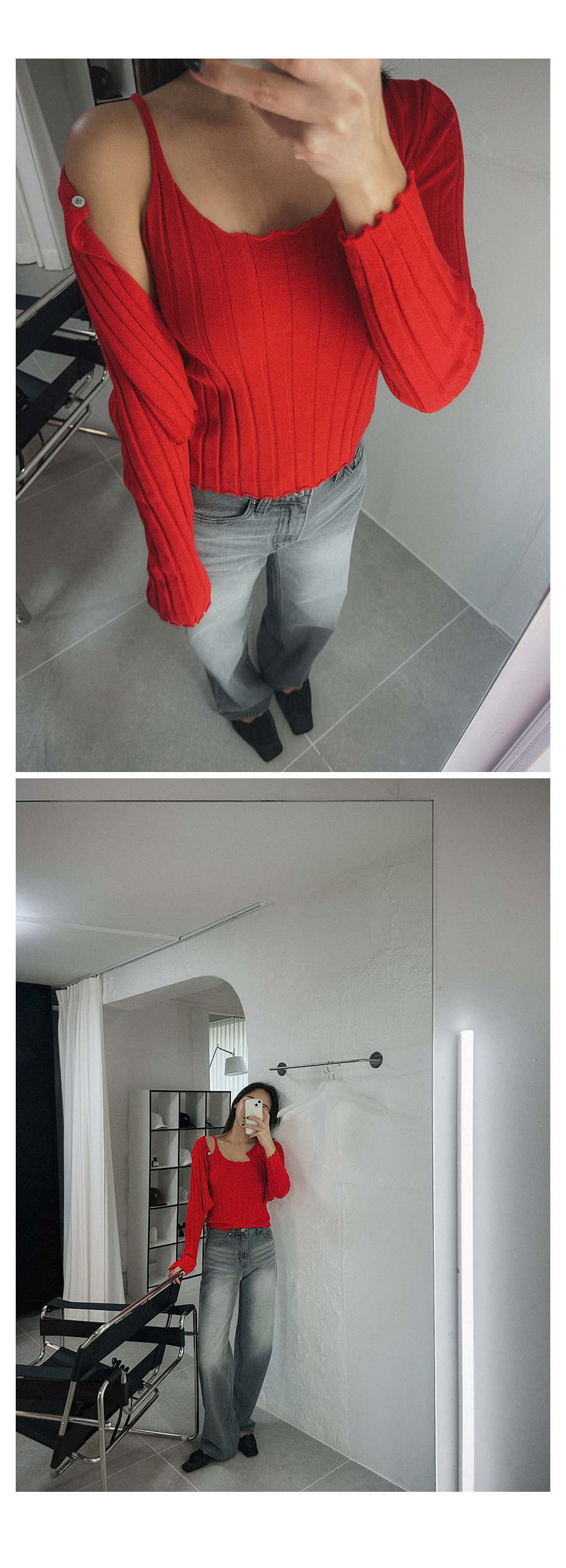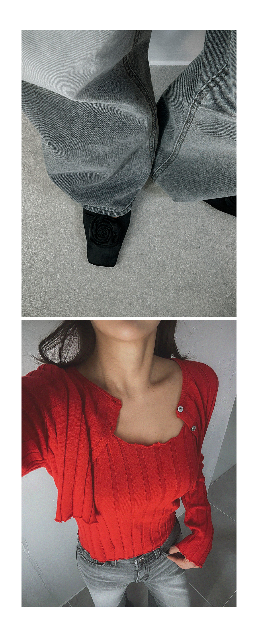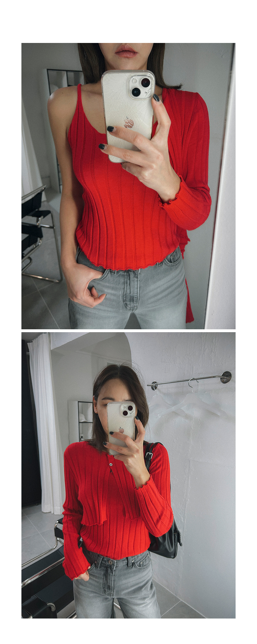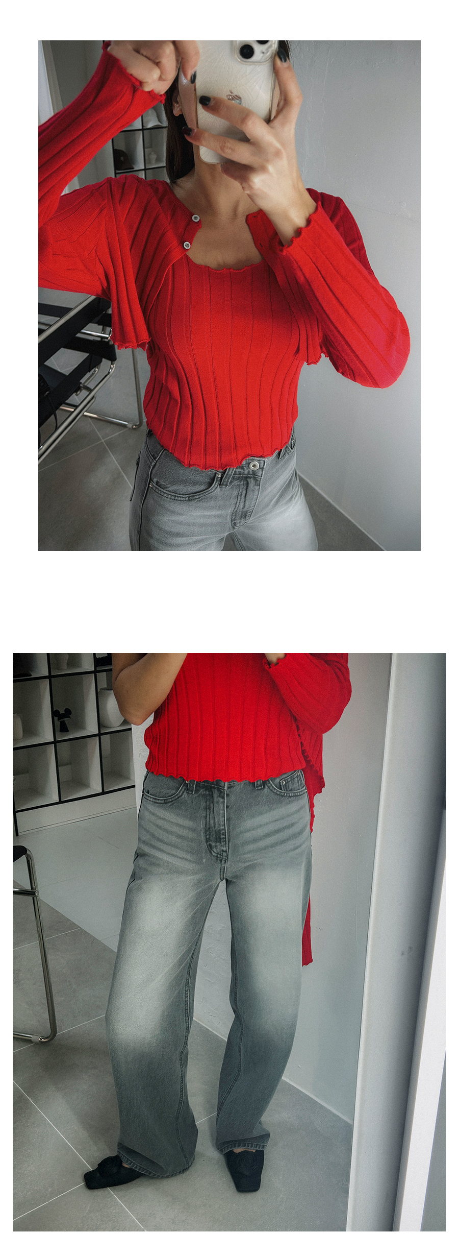 - 단추구멍이 작은 부분의 경우, 단추에 맞게 쪽가위로 터주셔서 착용부탁드립니다.
