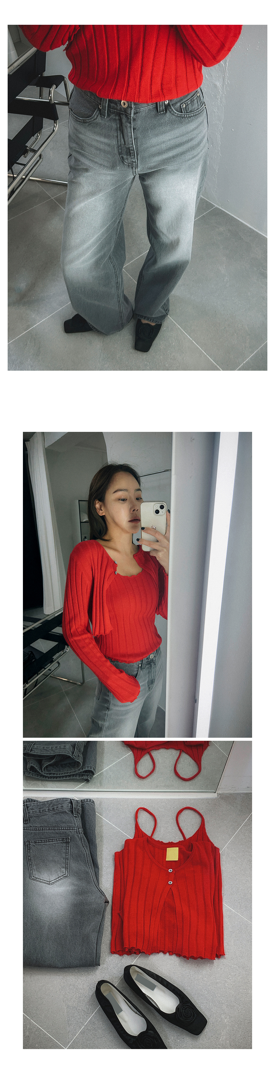 - 또 데님 제품 및 염색한 원단 제품은 세탁시 물빠짐 현상이 일어날 수 있으므로 반드시 단독세탁을 해주셔야 합니다.