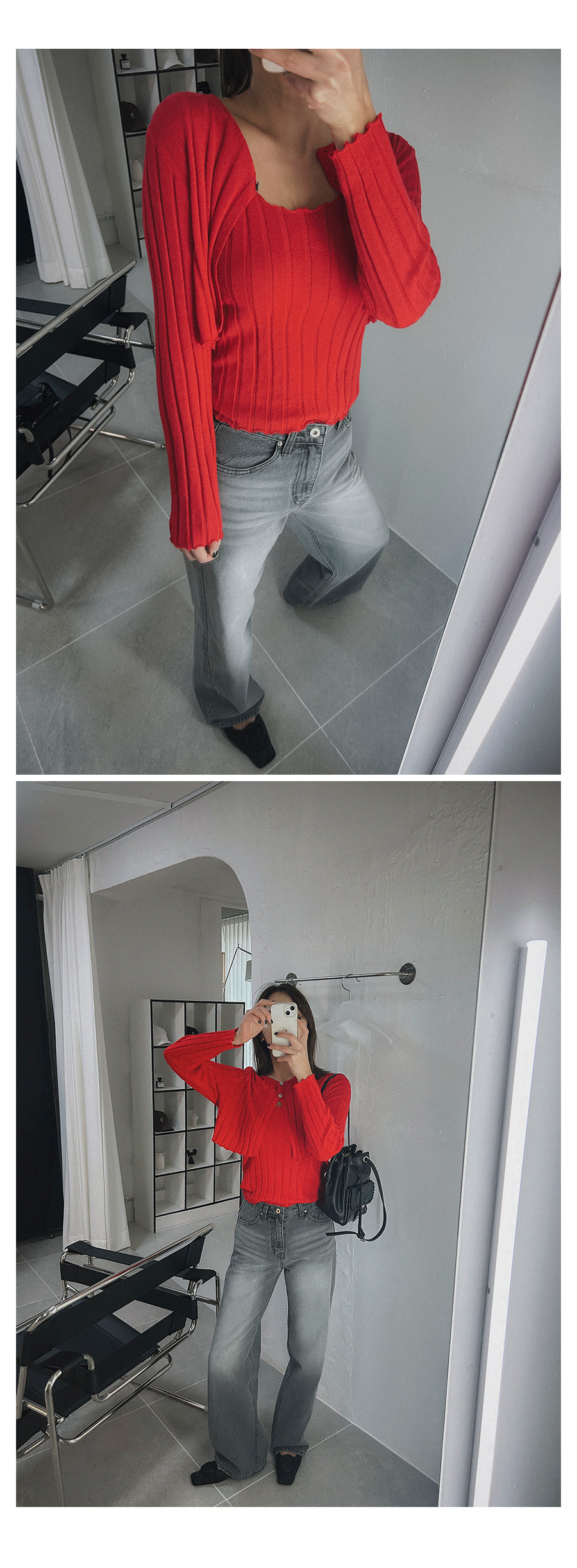 - 데님 소재 및 컬러감이 강한 의류의경우 밝은 소재(의류,가방,슈즈)와 함께 착용시 이염 가능성이 있을 수 있으니 주의하여 주세요.