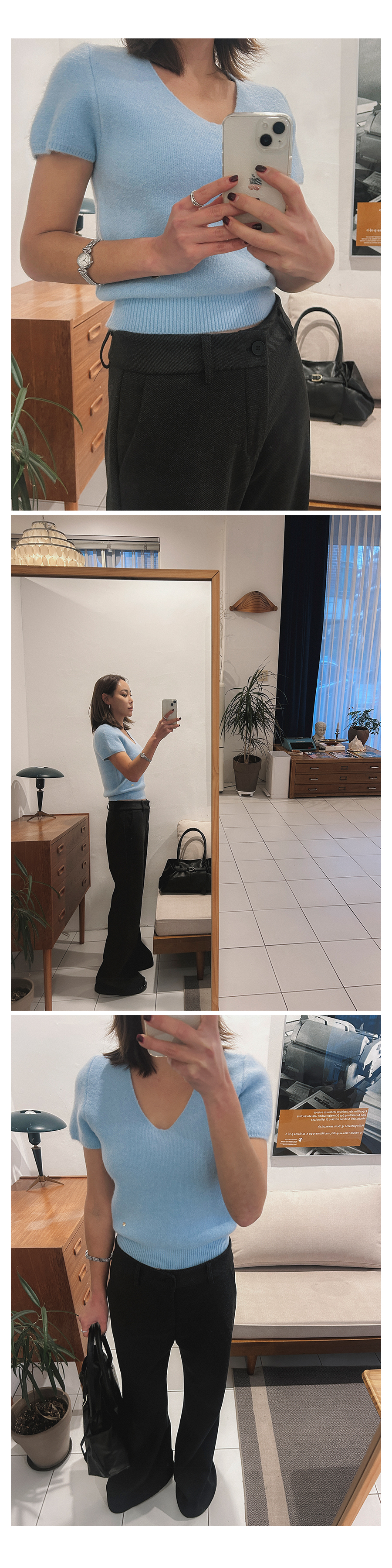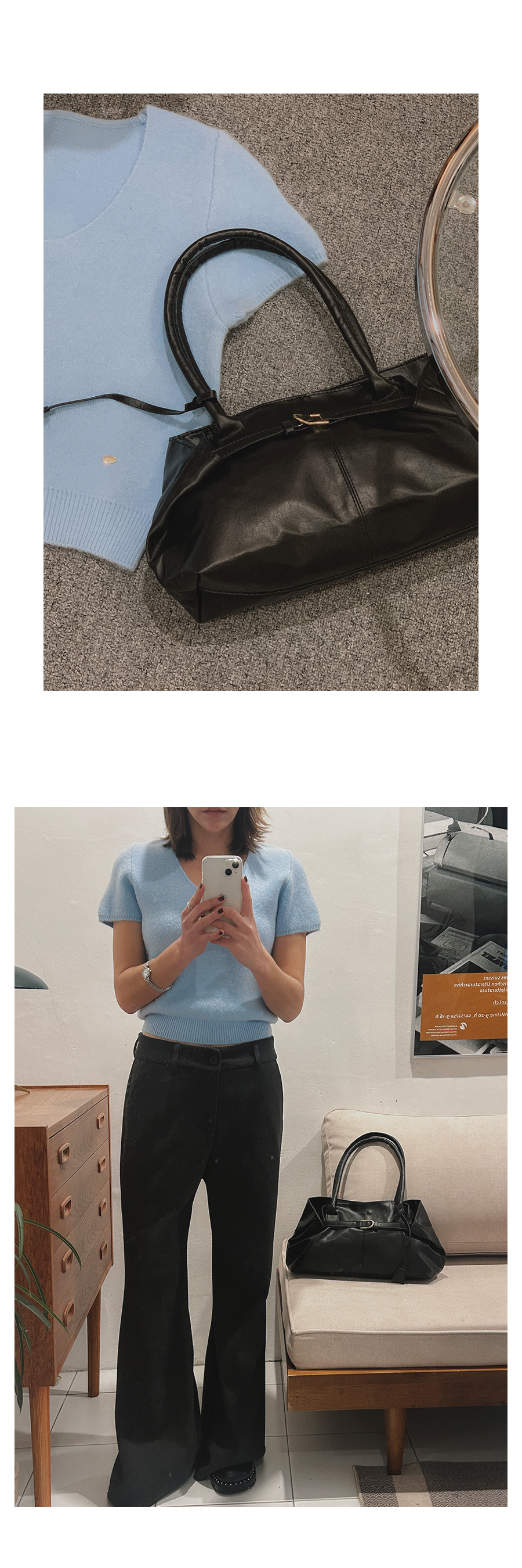 - 데님 소재 및 컬러감이 강한 의류의경우 밝은 소재(의류,가방,슈즈)와 함께 착용시 이염 가능성이 있을 수 있으니 주의하여 주세요.