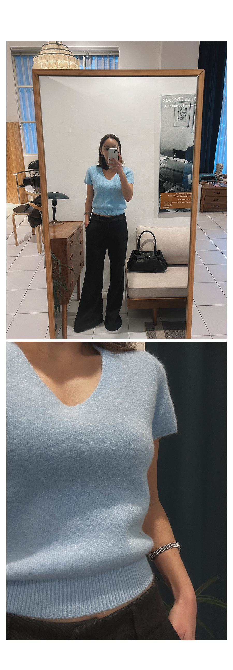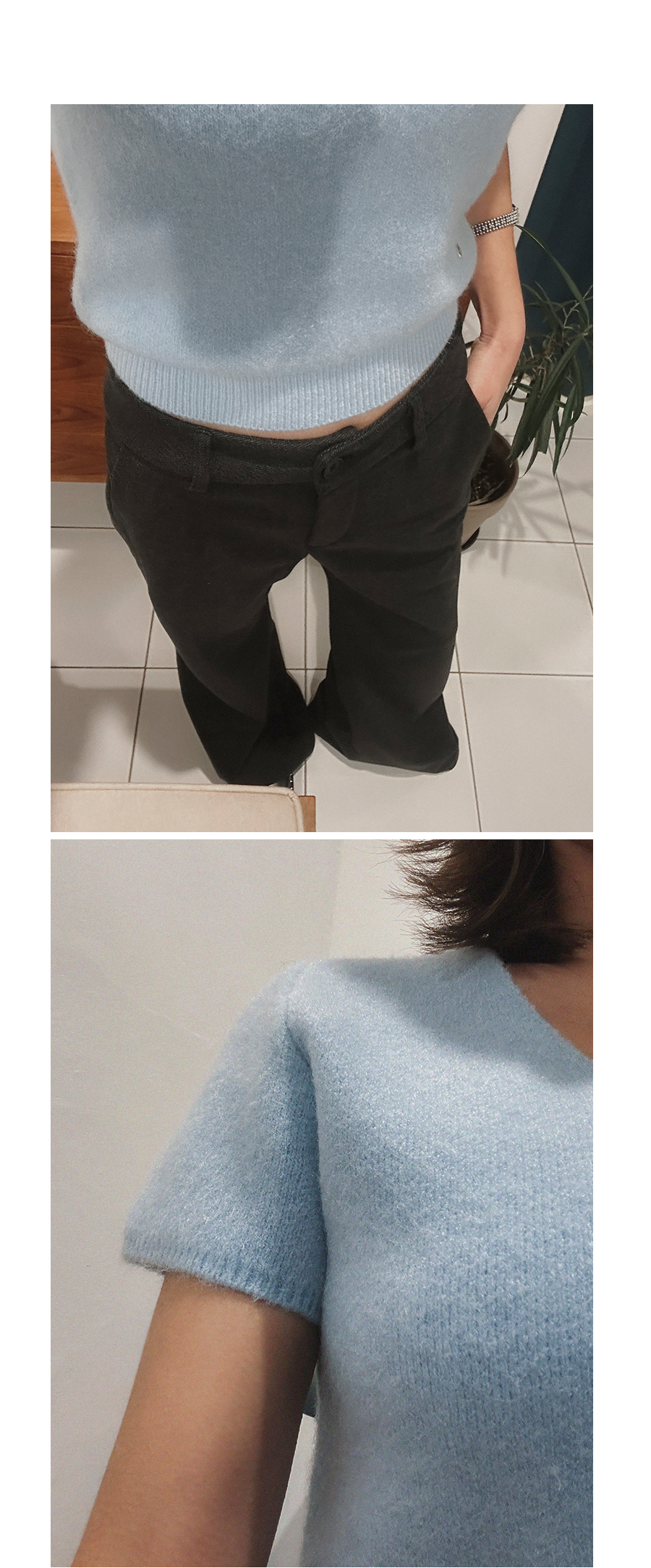비침 X(아이보리△) l 신축성 O l 두께감 △ l 안감 X l 광택 X