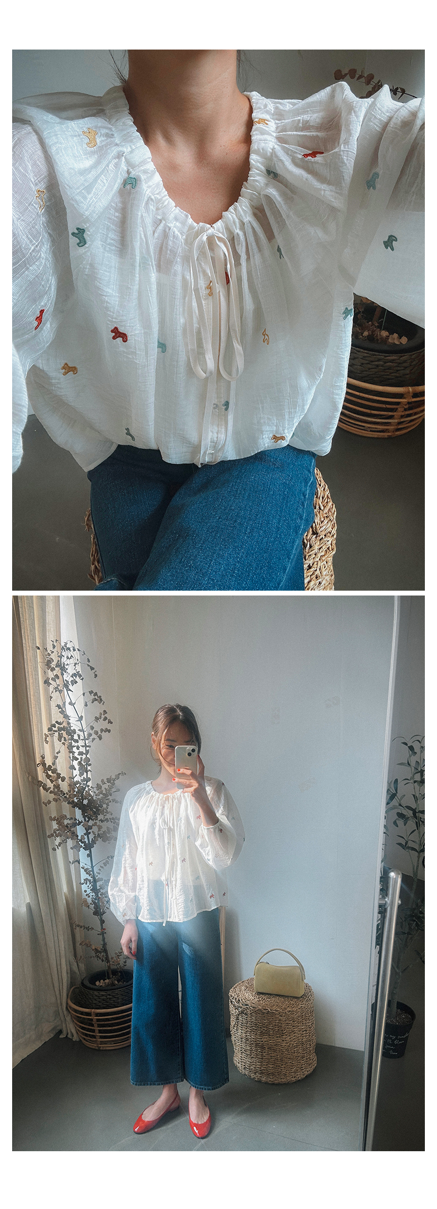 - 단추구멍이 작은 부분의 경우, 단추에 맞게 쪽가위로 터주셔서 착용부탁드립니다.