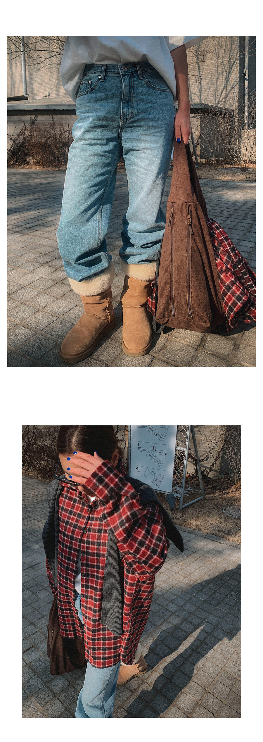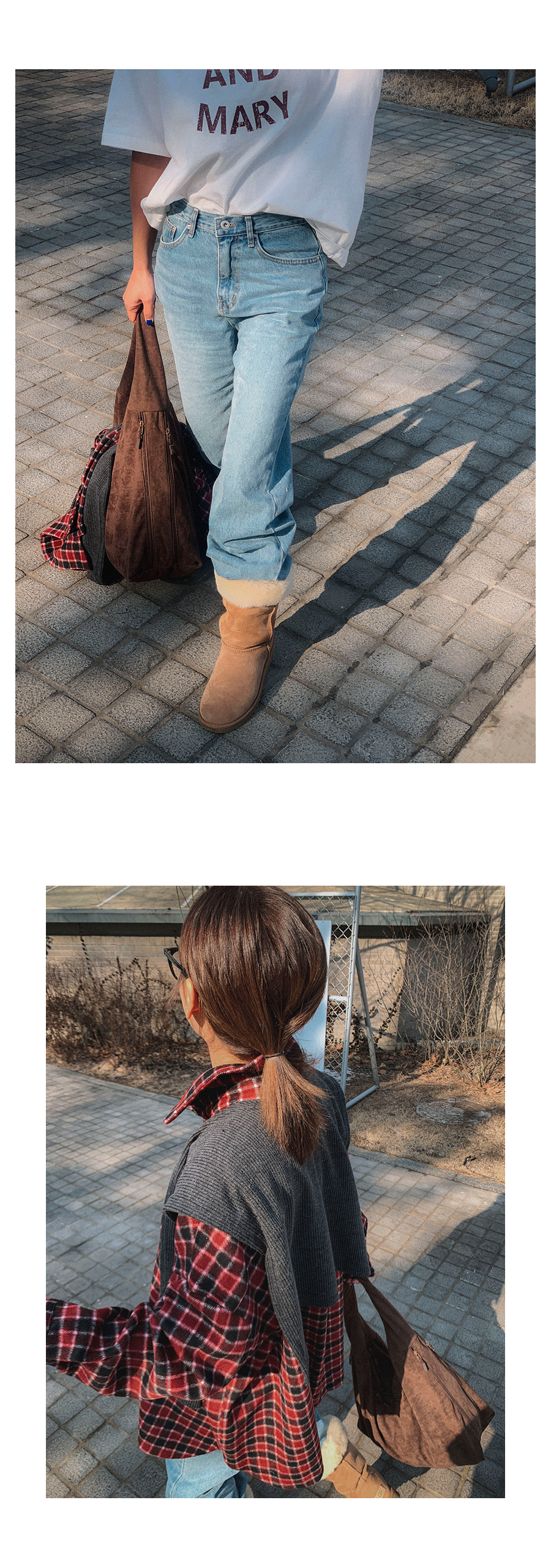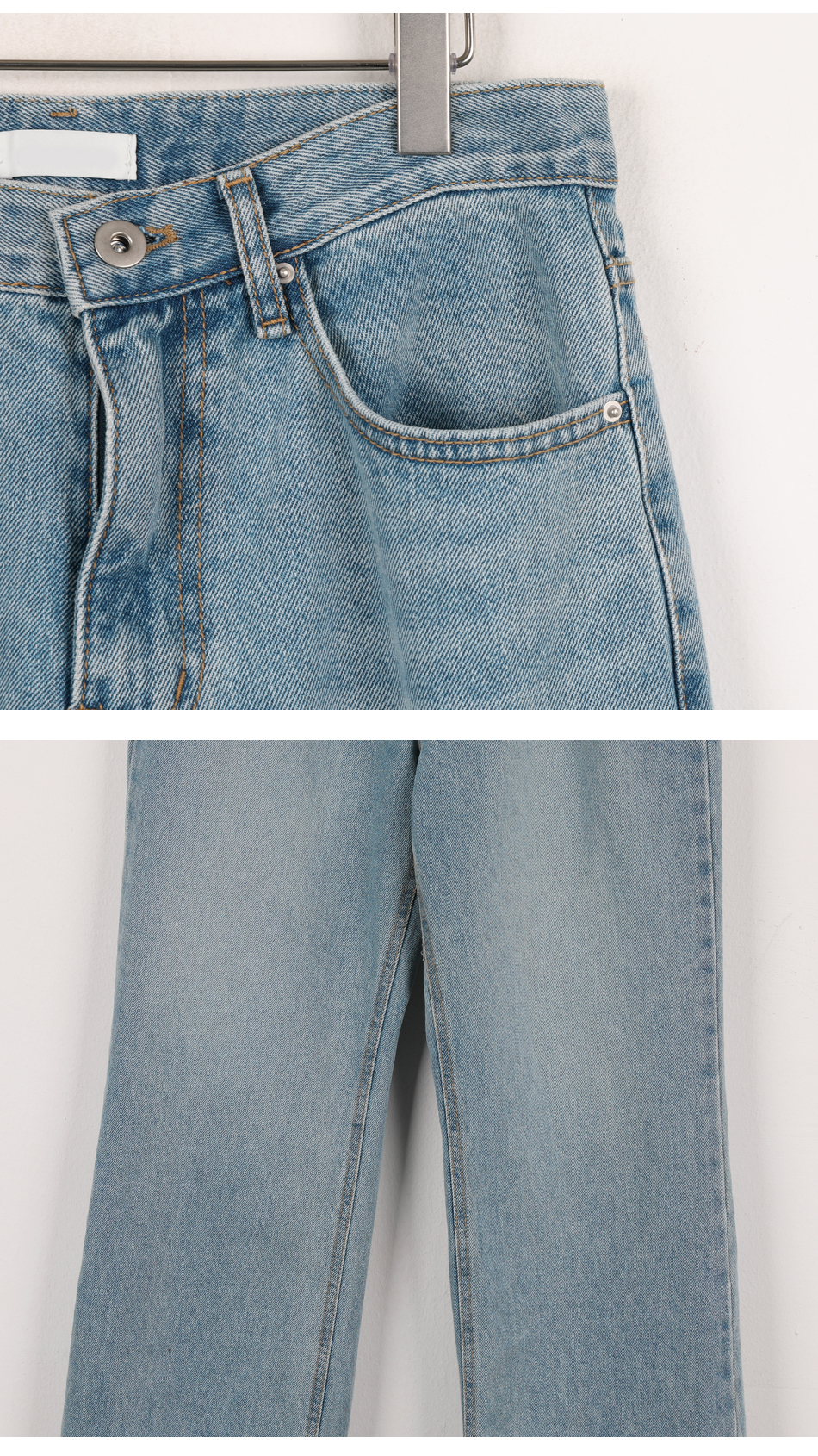 - 데님 소재 및 컬러감이 강한 의류의경우 밝은 소재(의류,가방,슈즈)와 함께 착용시 이염 가능성이 있을 수 있으니 주의하여 주세요.