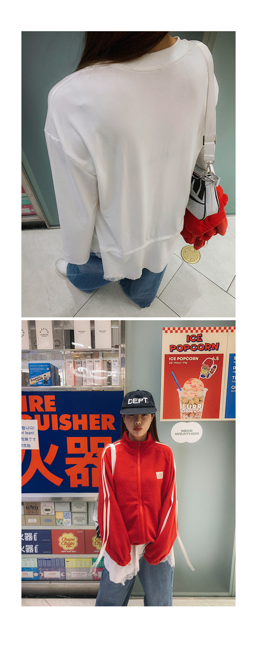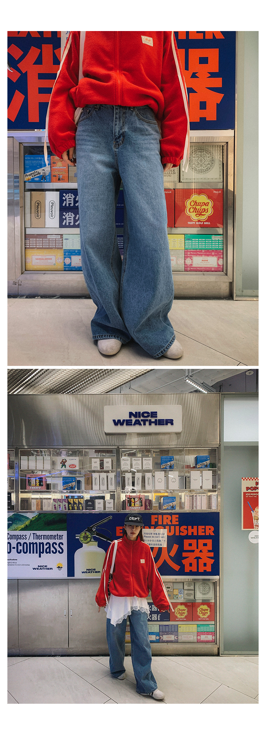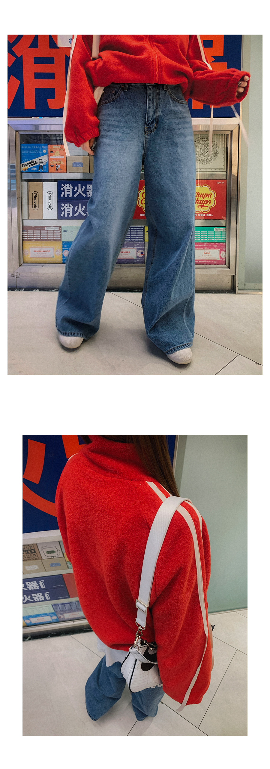 MODEL_HEIGHT 163cm l WEIGHT 45kg l TOP 44-55size l BOTTOM 26inch l SHOES 230mm