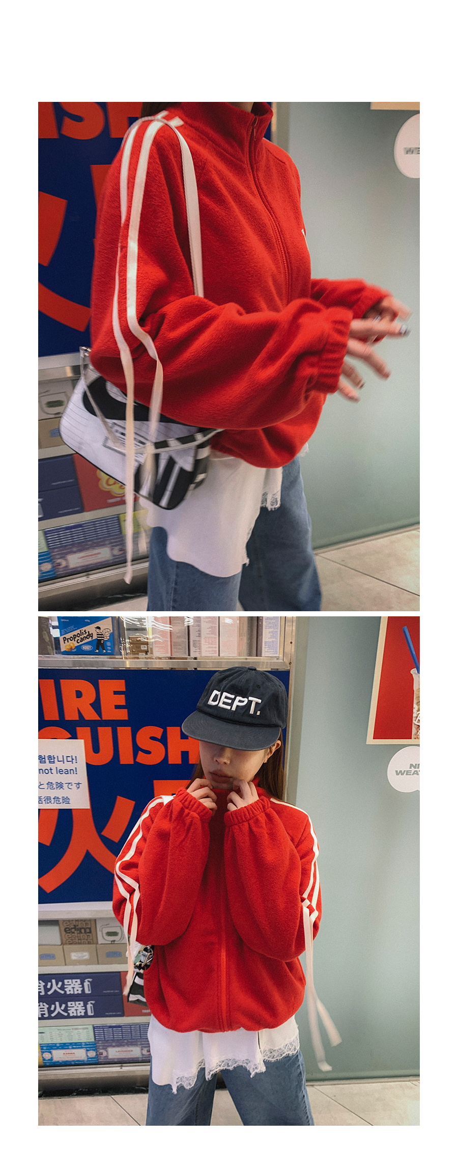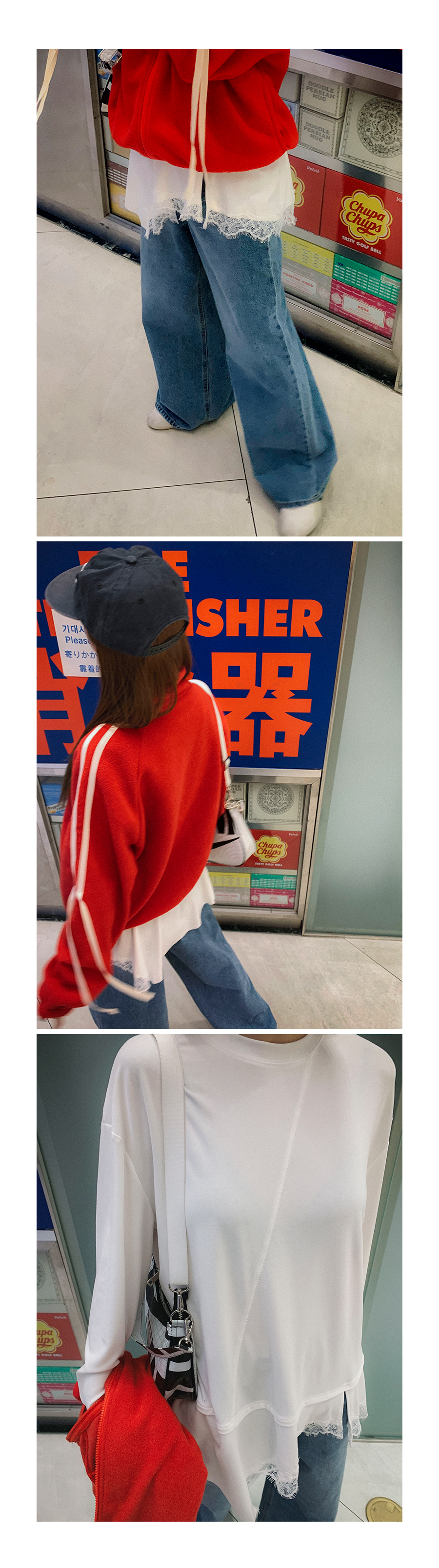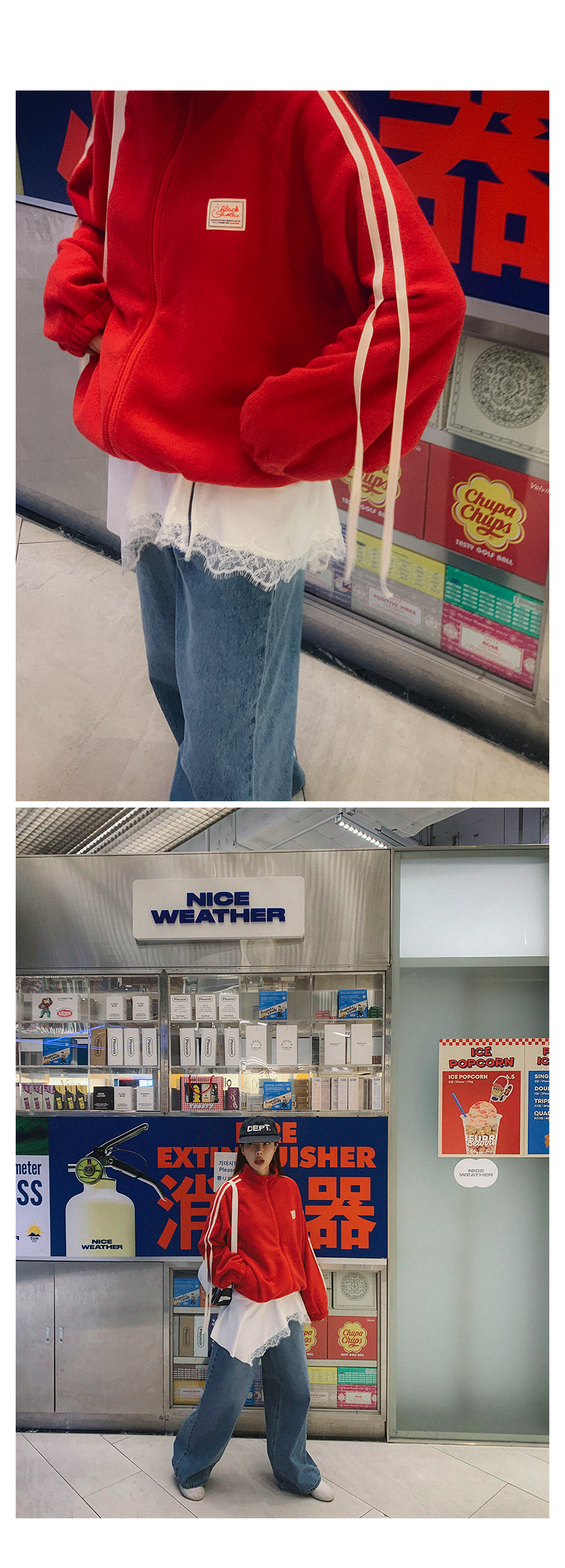 MODEL_HEIGHT 163cm l WEIGHT 45kg l TOP 44-55size l BOTTOM 26inch l SHOES 230mm