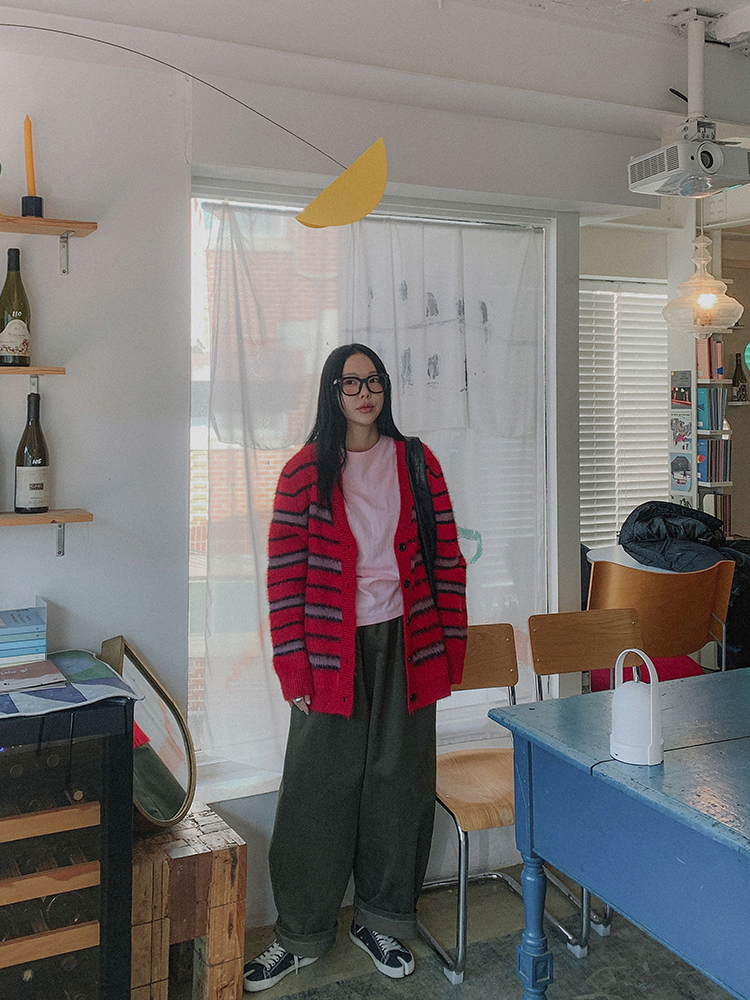 MODEL_HEIGHT 163cm l WEIGHT 45kg l TOP 44-55size l BOTTOM 26inch l SHOES 230mm