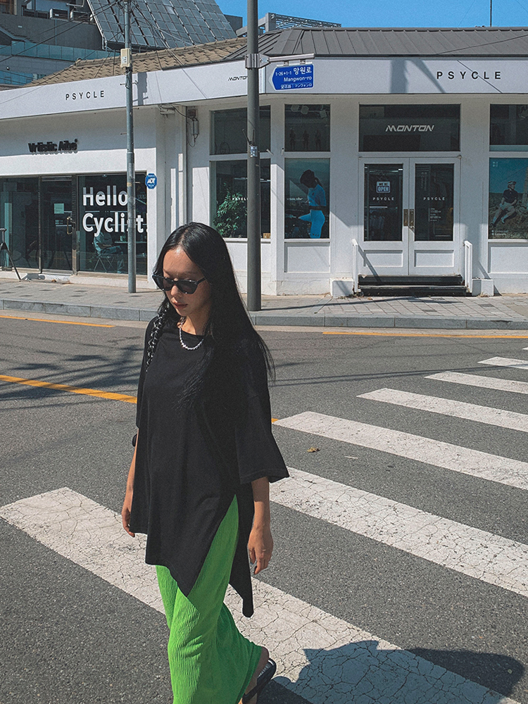 MODEL_HEIGHT 163cm l WEIGHT 45kg l TOP 44-55size l BOTTOM 26inch l SHOES 230mm
