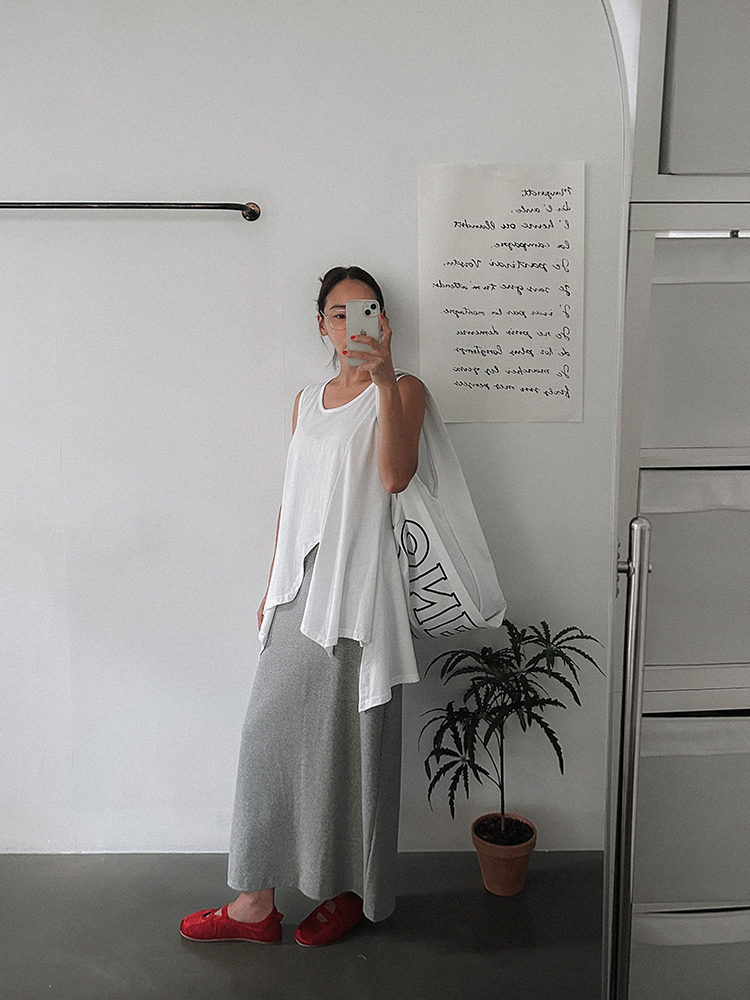 HANA _ HEIGHT 165cm l TOP 44-55size l BOTTOM 25-26inch l SHOES 235mm
