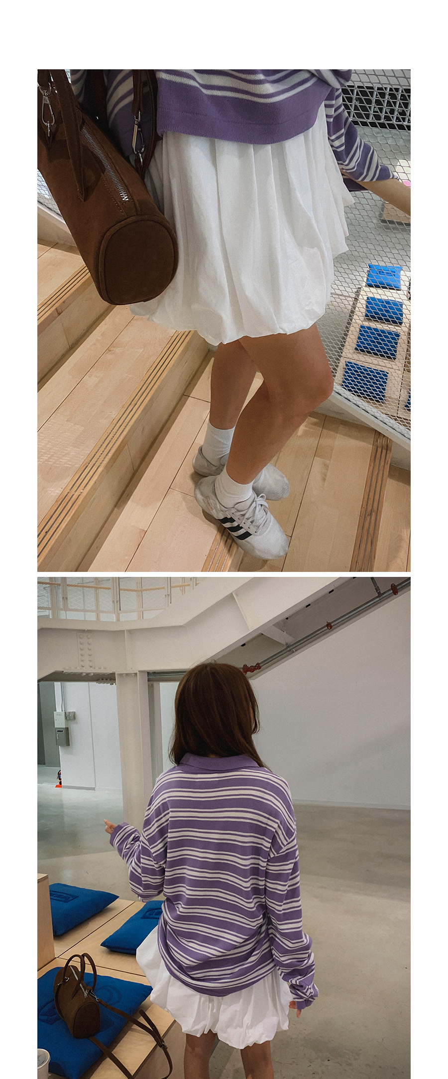 - 데님 소재 및 컬러감이 강한 의류의경우 밝은 소재(의류,가방,슈즈)와 함께 착용시 이염 가능성이 있을 수 있으니 주의하여 주세요.