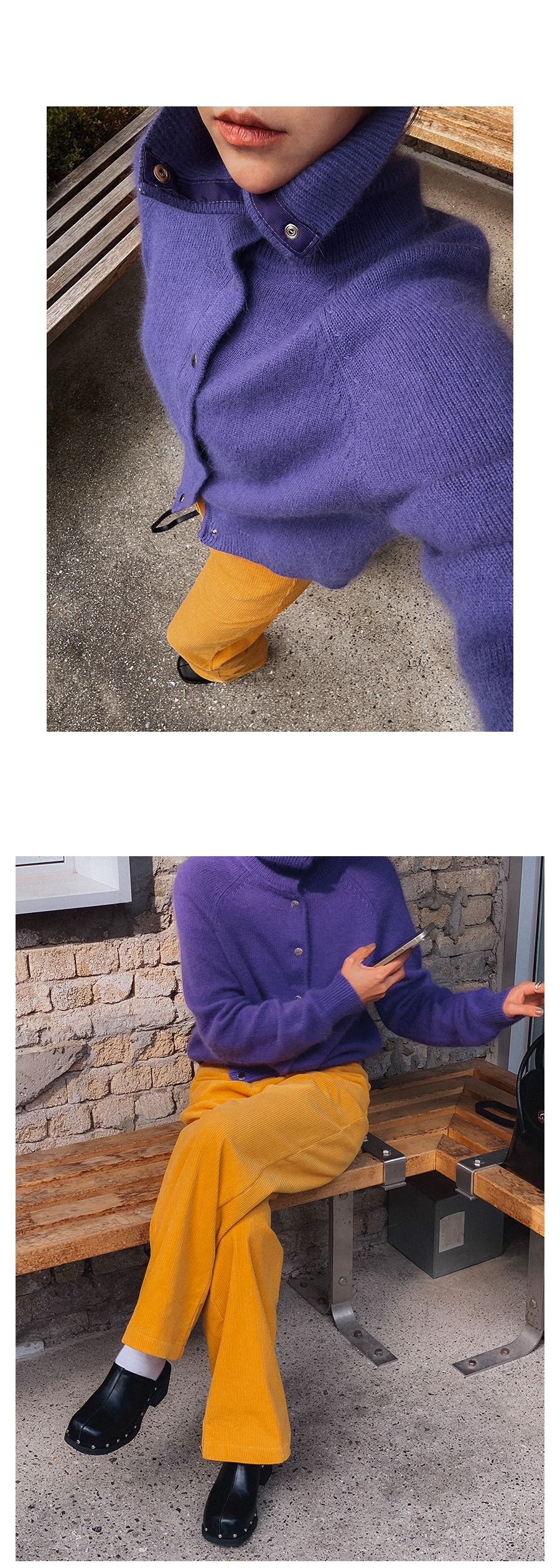 - 데님 소재 및 컬러감이 강한 의류의경우 밝은 소재(의류,가방,슈즈)와 함께 착용시 이염 가능성이 있을 수 있으니 주의하여 주세요.