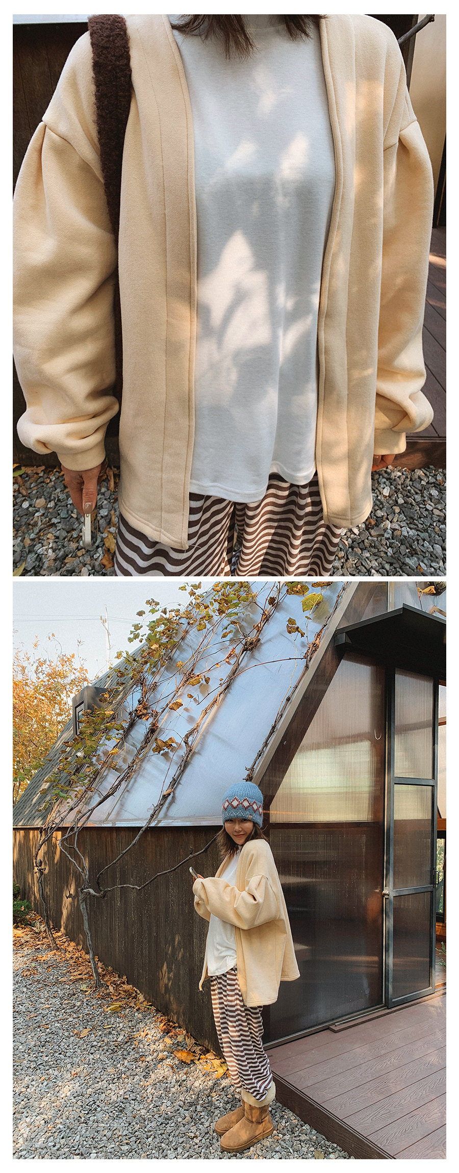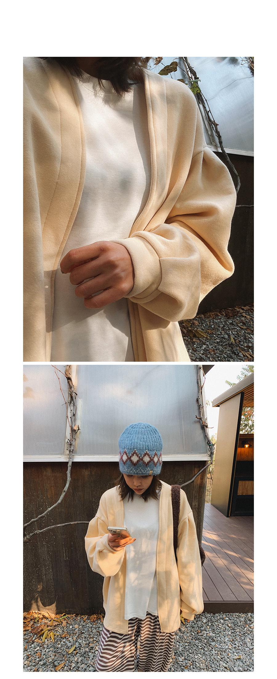 - 단추구멍이 작은 부분의 경우, 단추에 맞게 쪽가위로 터주셔서 착용부탁드립니다.