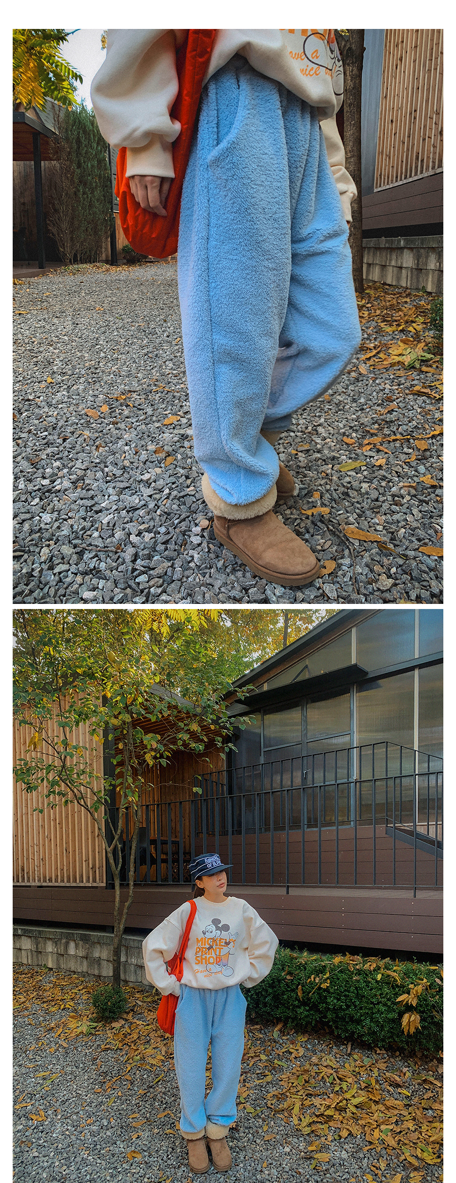- 데님 소재 및 컬러감이 강한 의류의경우 밝은 소재(의류,가방,슈즈)와 함께 착용시 이염 가능성이 있을 수 있으니 주의하여 주세요.