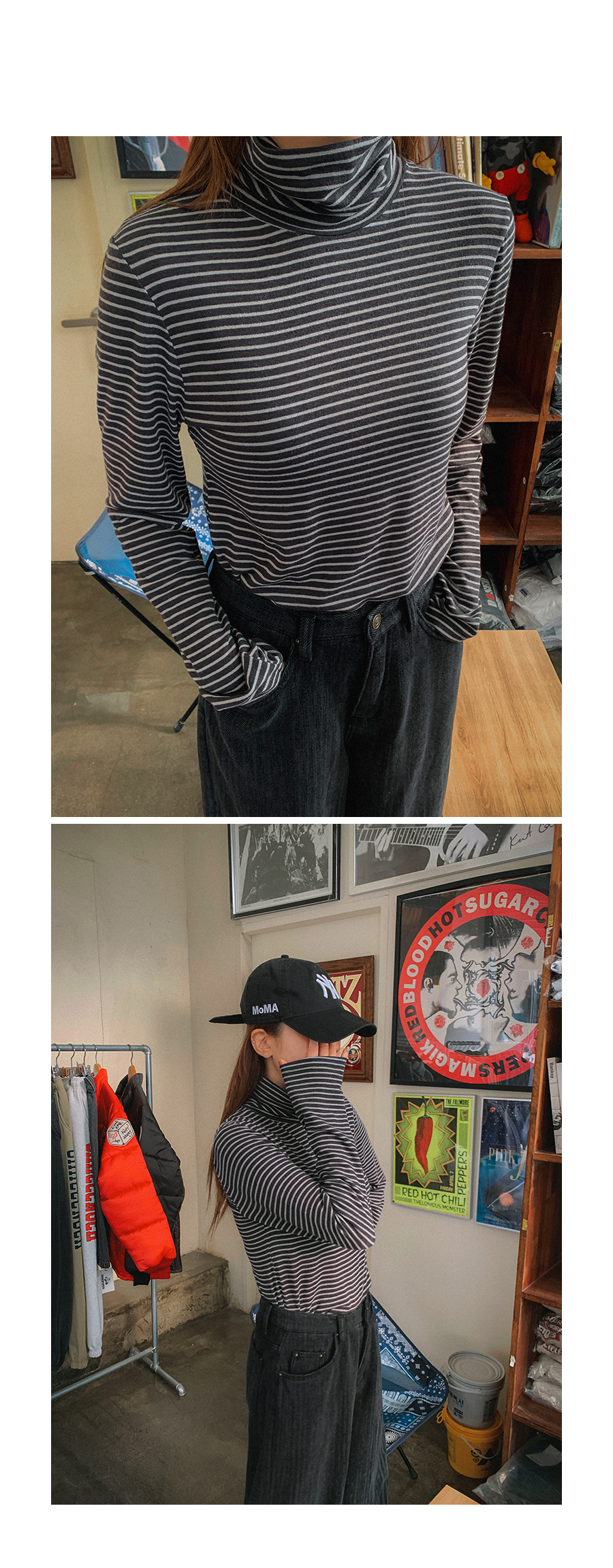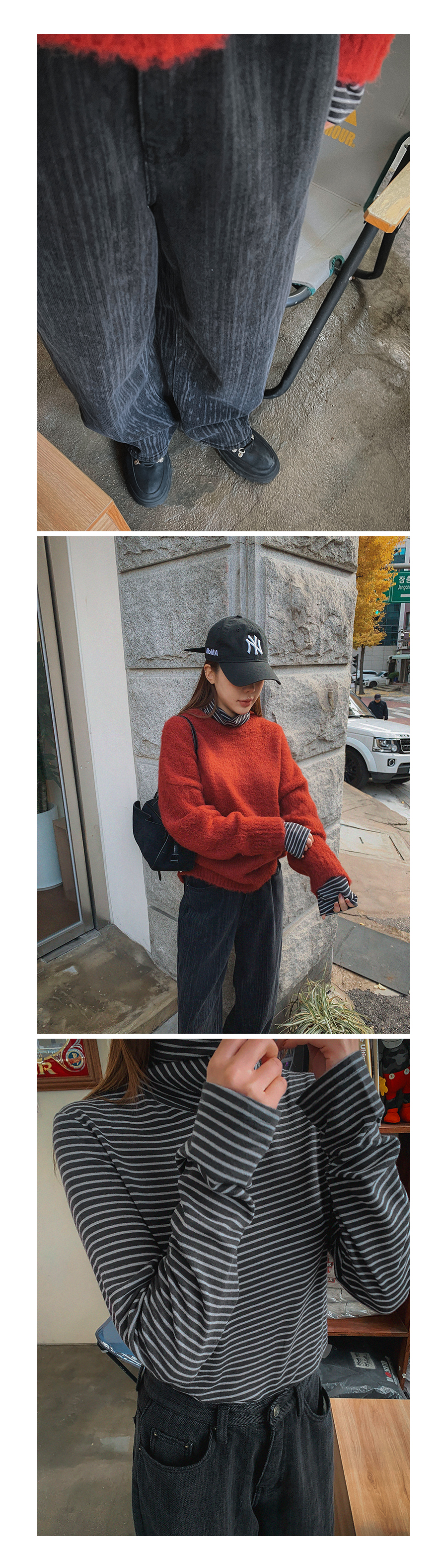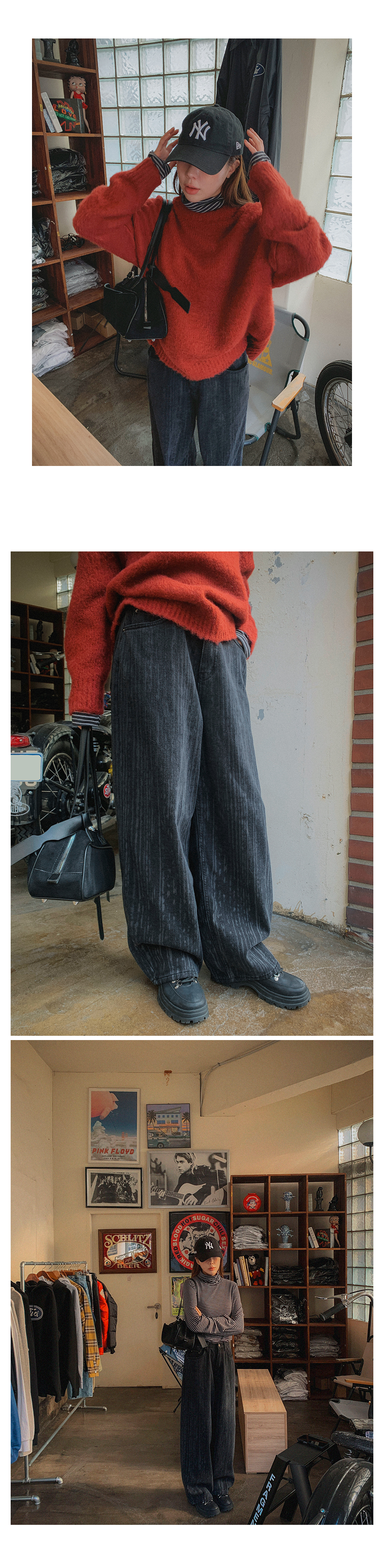 MODEL_HEIGHT 163cm l WEIGHT 45kg l TOP 44-55size l BOTTOM 26inch l SHOES 230mm