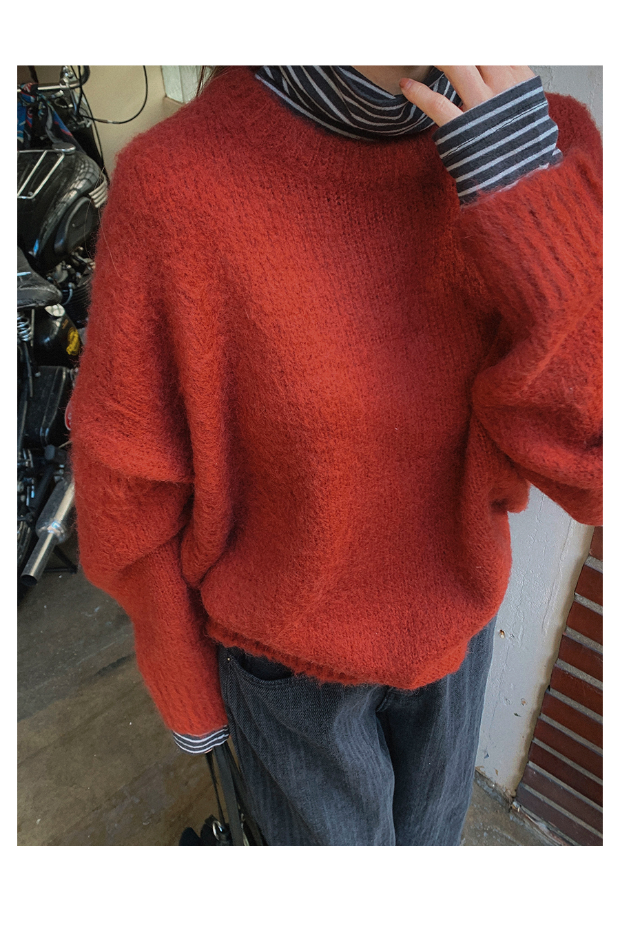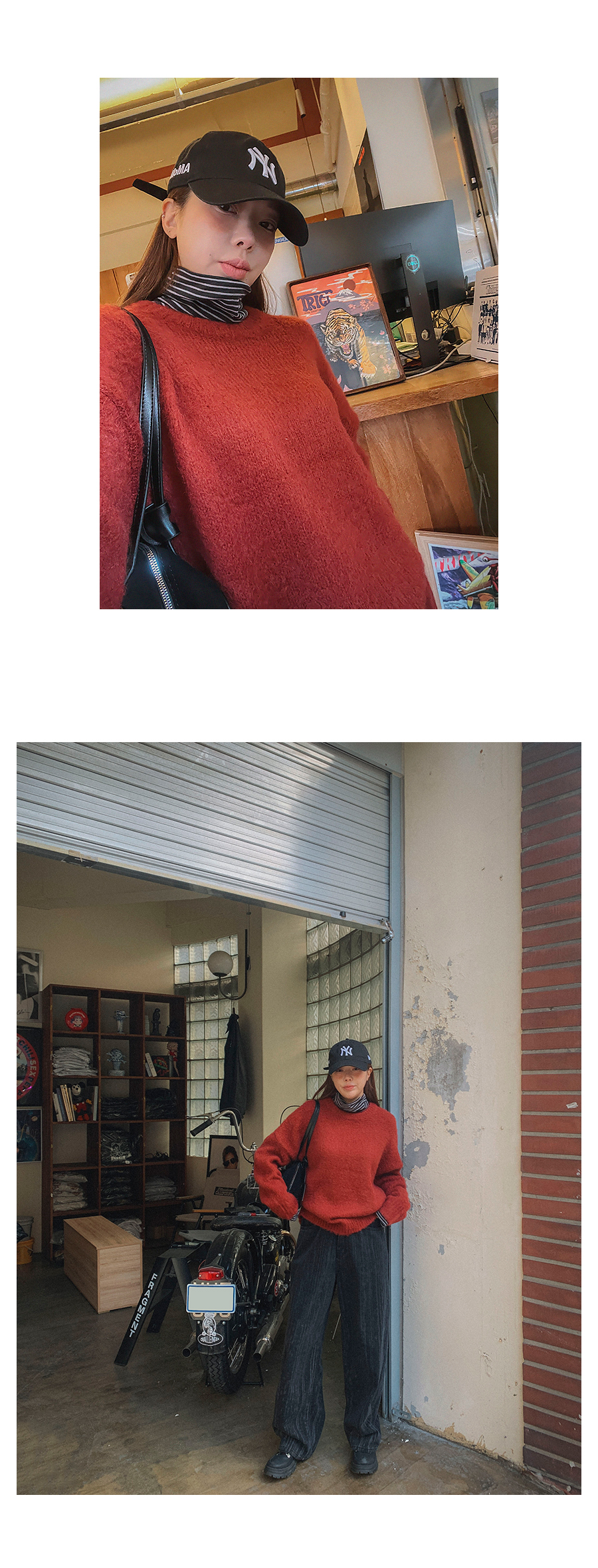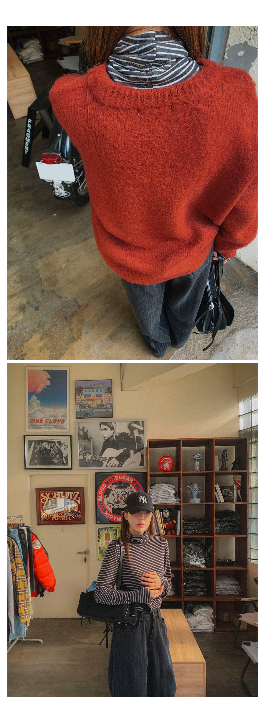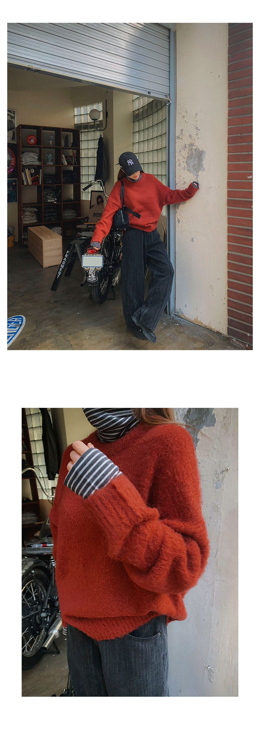 MODEL_HEIGHT 163cm l WEIGHT 45kg l TOP 44-55size l BOTTOM 26inch l SHOES 230mm