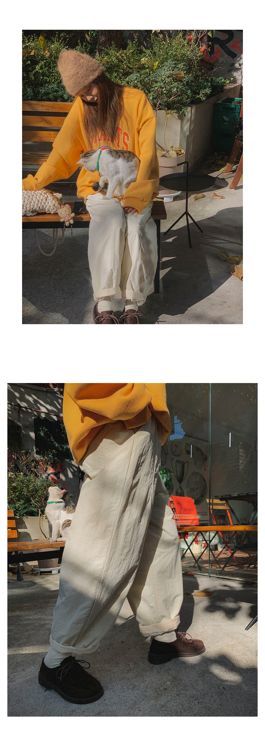 MODEL_HEIGHT 163cm l WEIGHT 45kg l TOP 44-55size l BOTTOM 26inch l SHOES 230mm