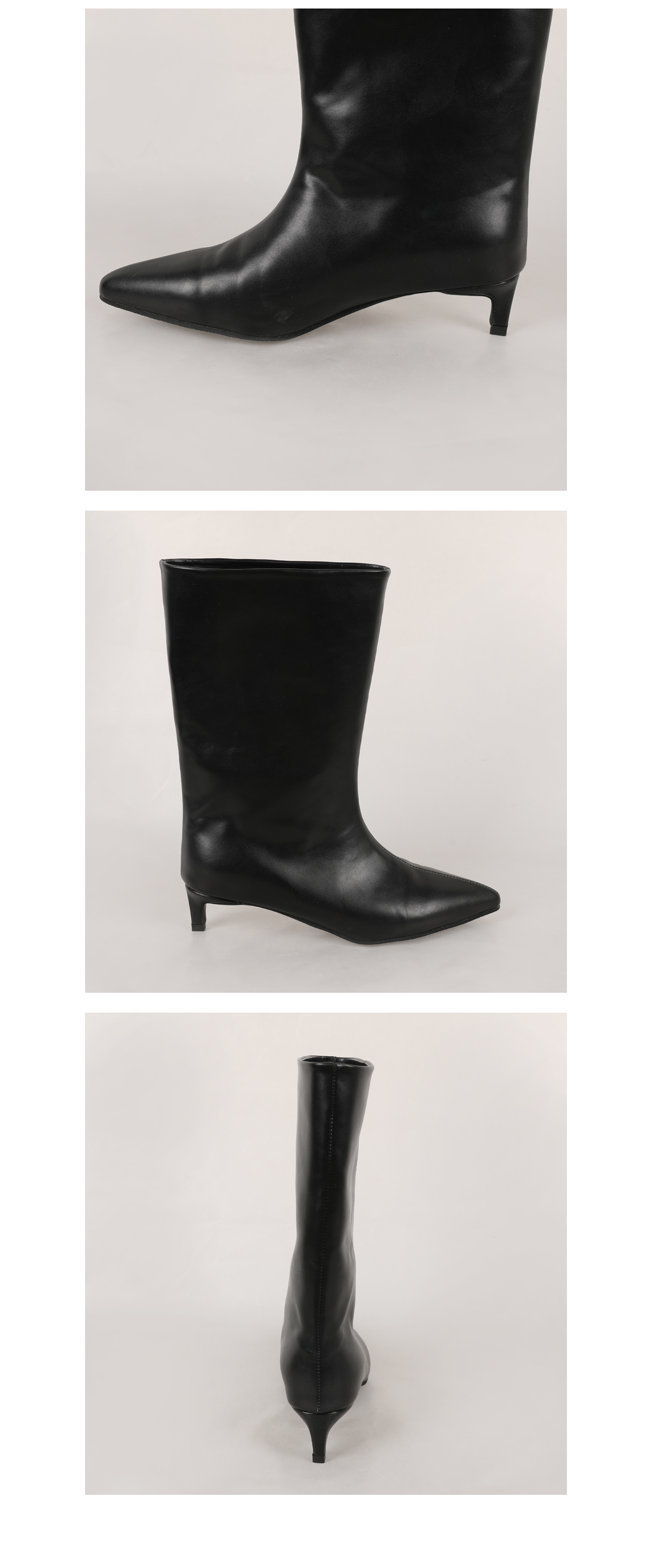 (235mm기준) 전체굽높이 4.5 / 발볼 11 / 총길이(굽포함) 30 / 종아리둘레 32 / 입구둘레 36