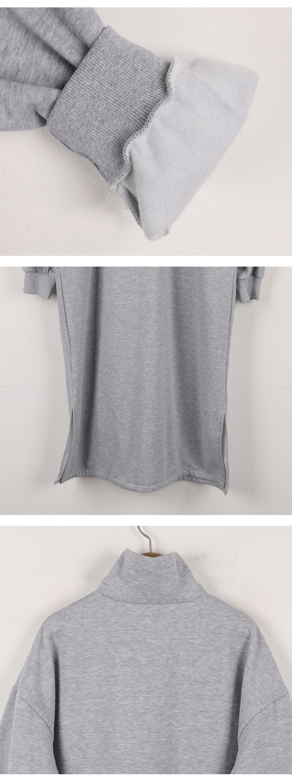 비침 X l 신축성 X l 두께감 △ l 안감 기모 l 광택 X