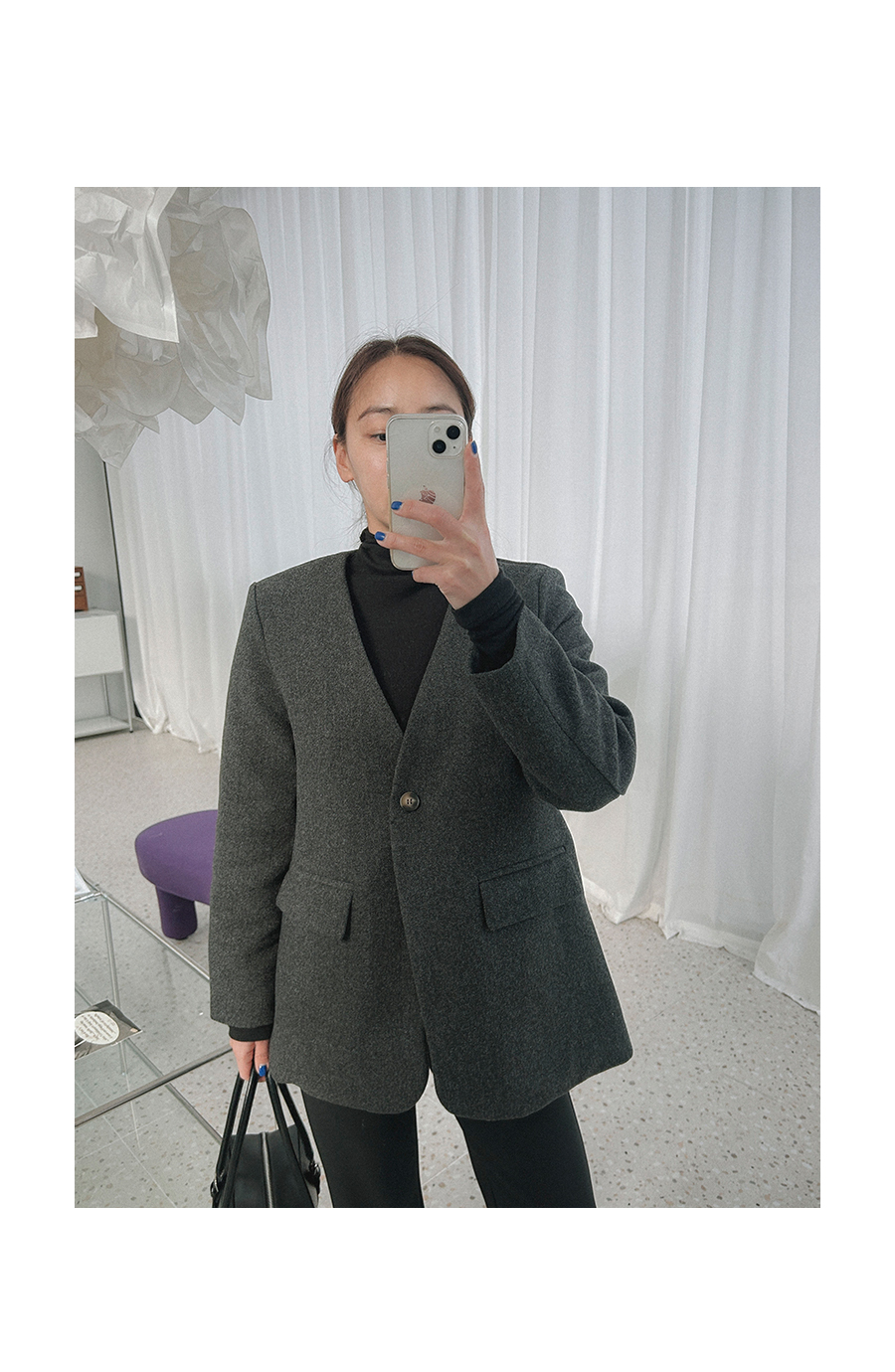 - 단추구멍이 작은 부분의 경우, 단추에 맞게 쪽가위로 터주셔서 착용부탁드립니다.