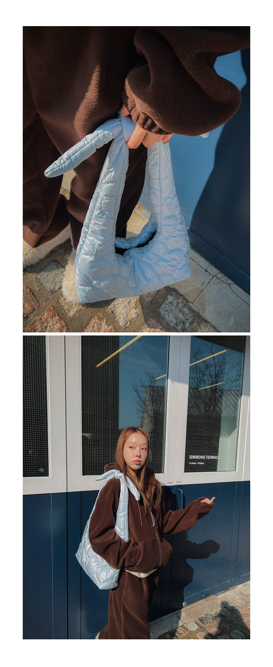 - 데님 소재 및 컬러감이 강한 의류의경우 밝은 소재(의류,가방,슈즈)와 함께 착용시 이염 가능성이 있을 수 있으니 주의하여 주세요.
