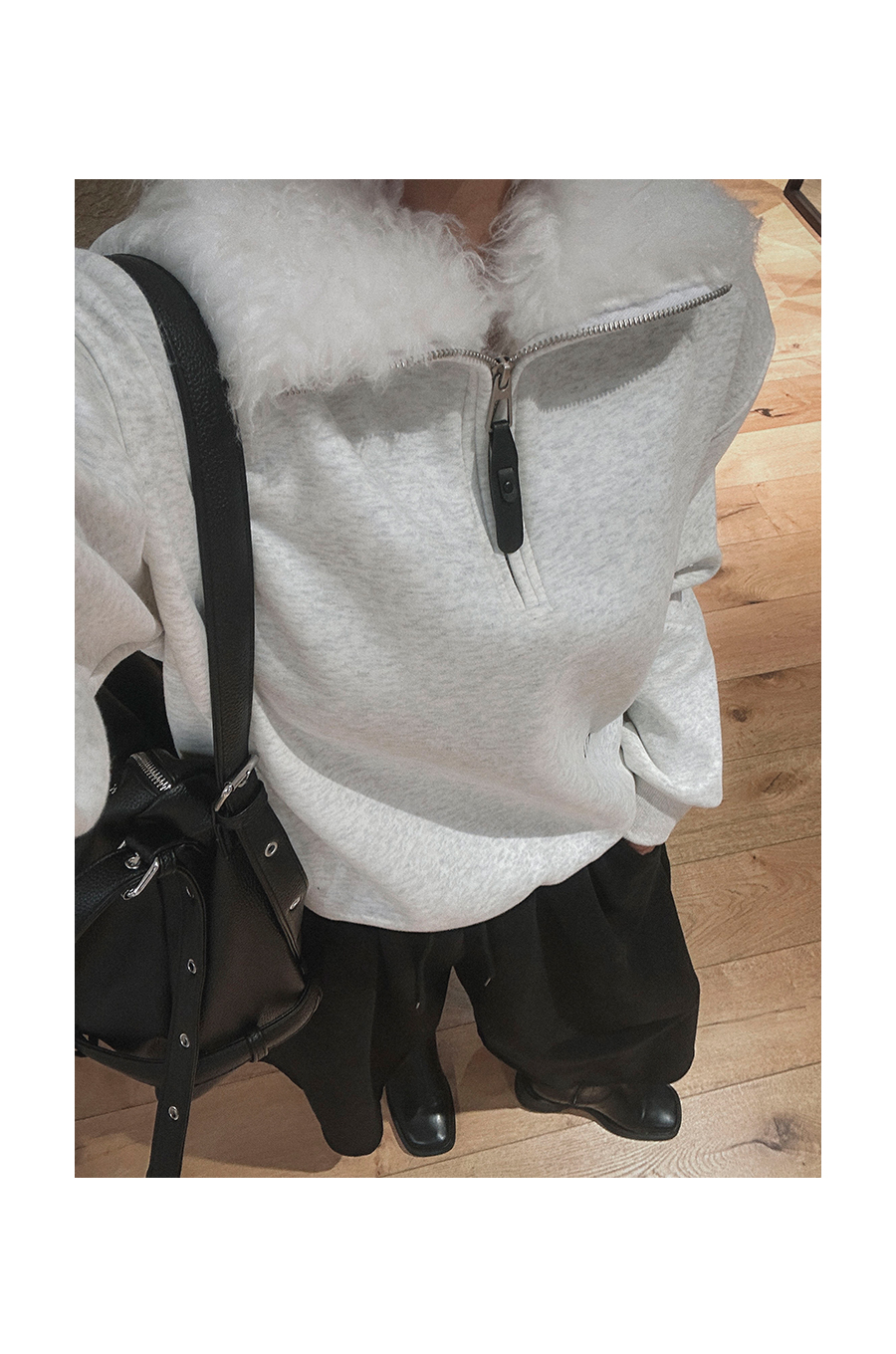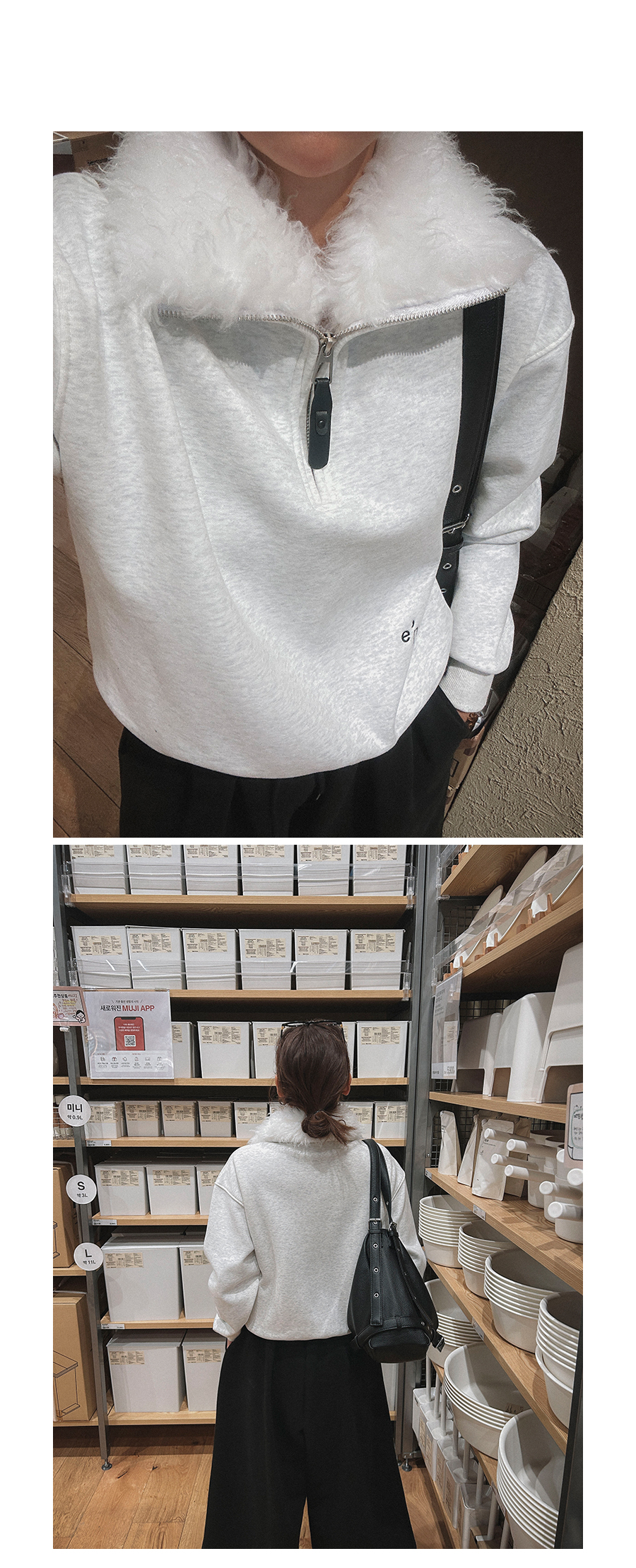 비침 X l 신축성 O l 두께감 △ l 안감 기모 l 광택 X