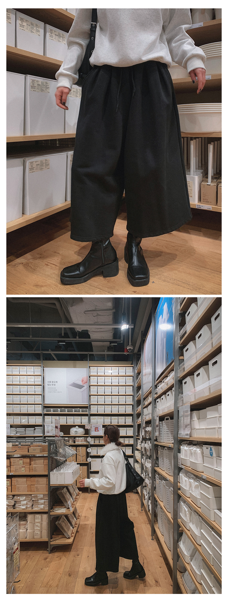 FREE 총장 85 / 허리 29(밴딩) / 엉덩이 67 / 허벅지 46.5 / 밑위 42 / 밑단 42.5