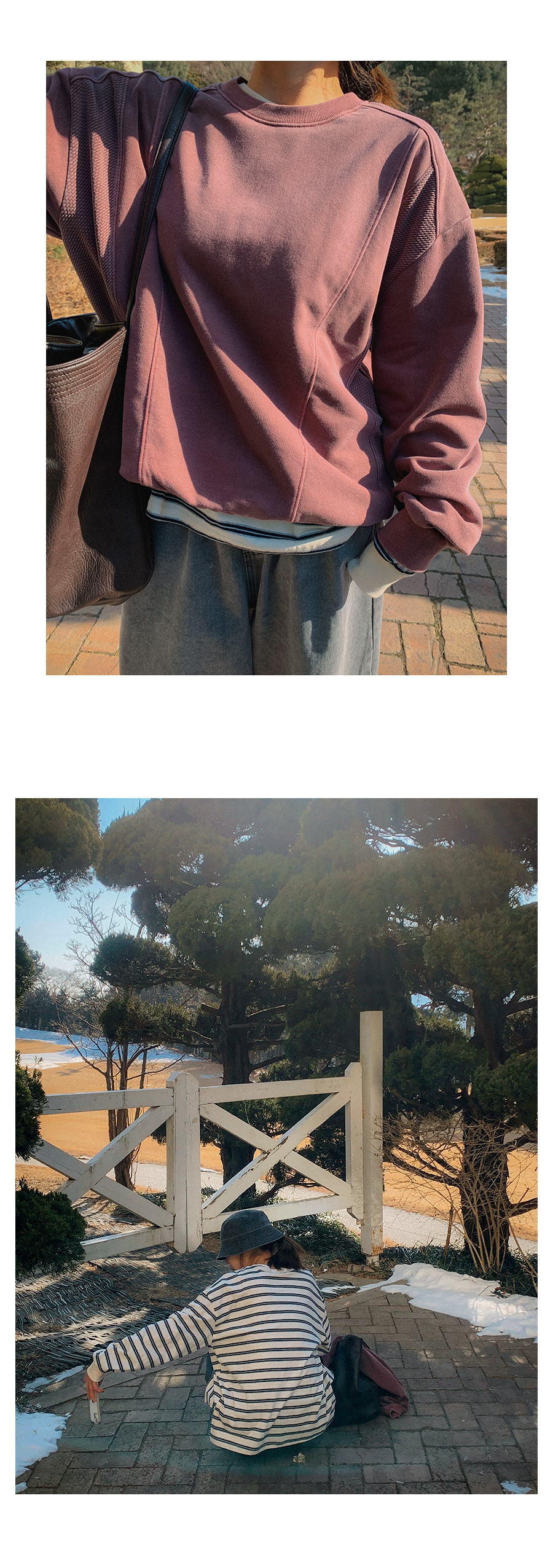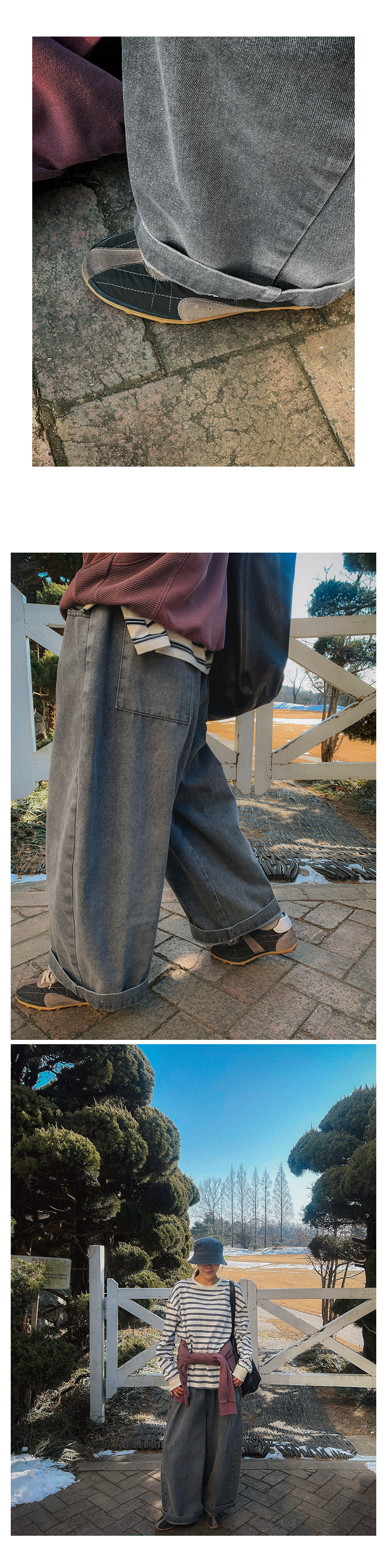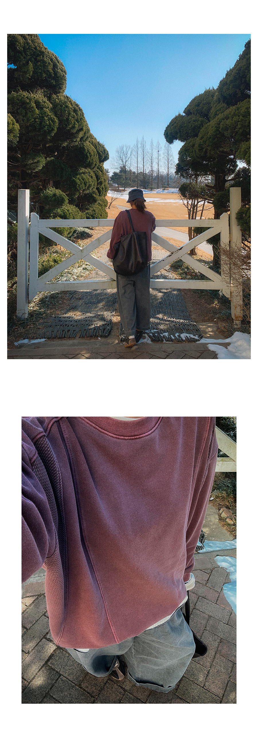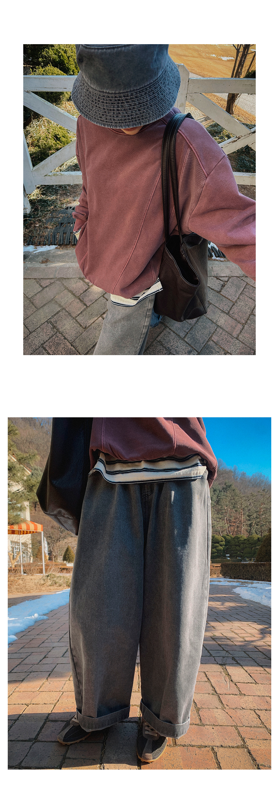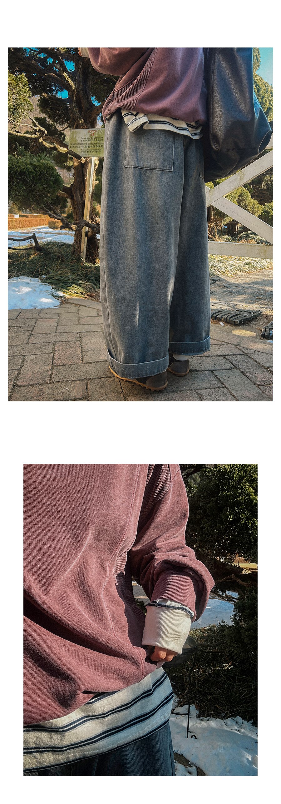 - 데님 소재 및 컬러감이 강한 의류의경우 밝은 소재(의류,가방,슈즈)와 함께 착용시 이염 가능성이 있을 수 있으니 주의하여 주세요.