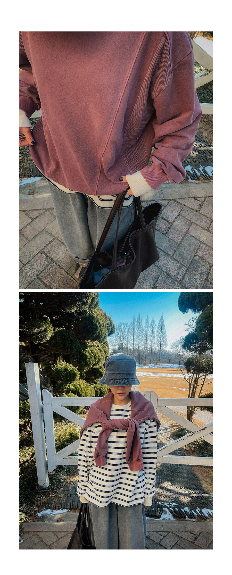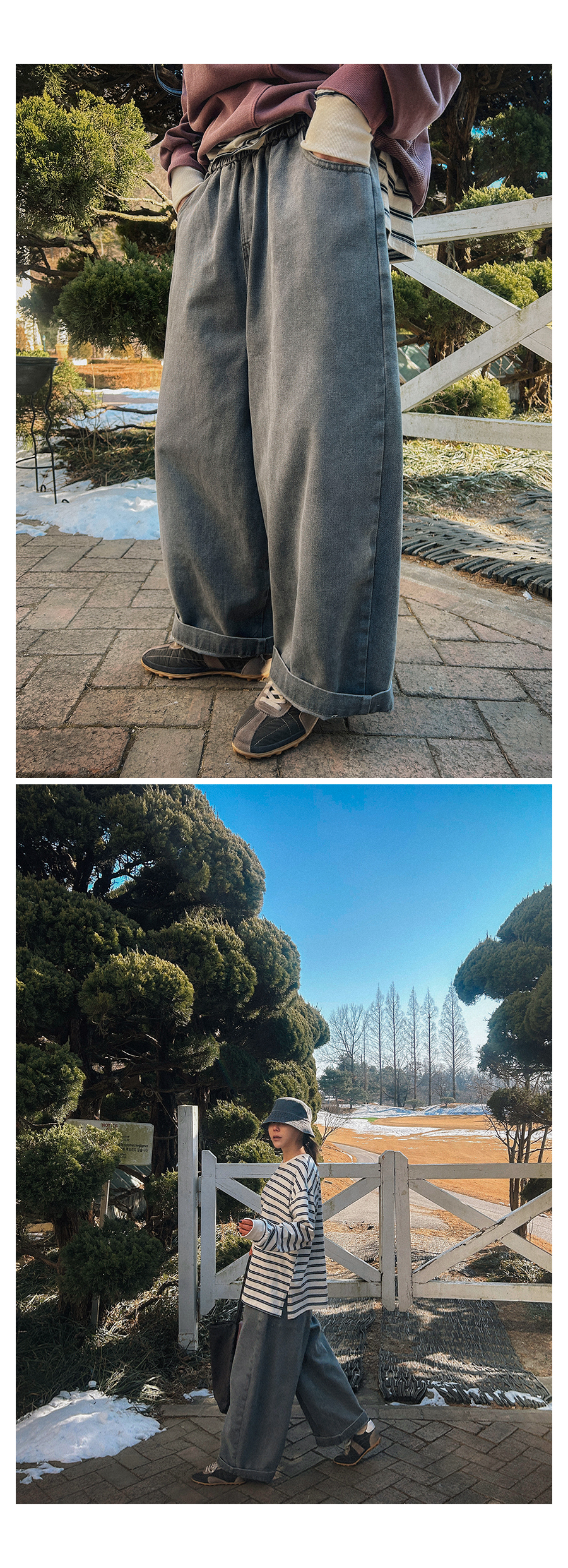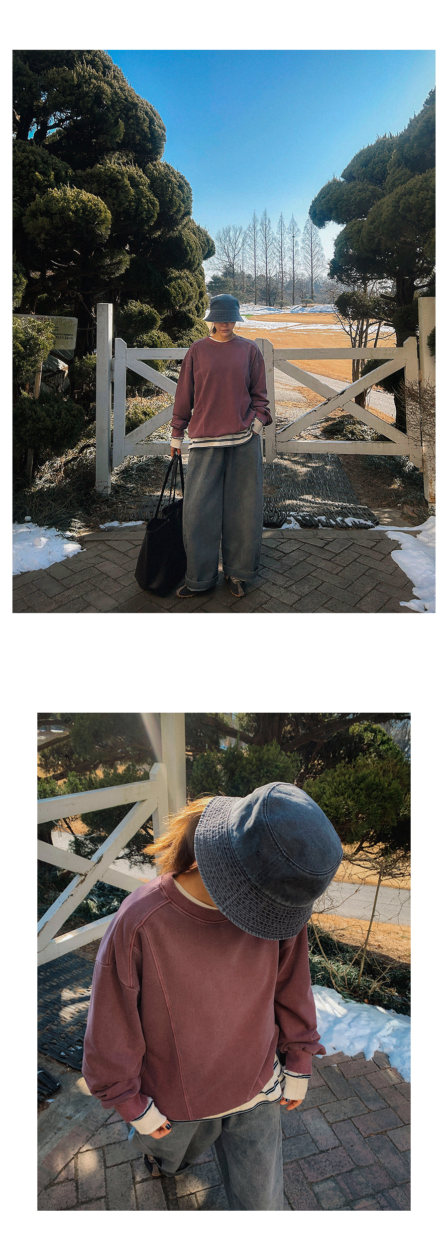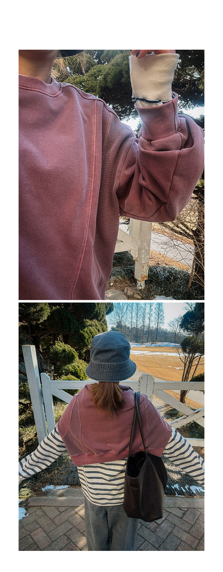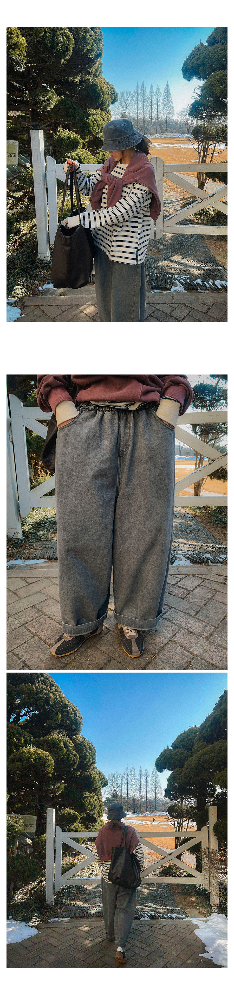 - 데님 소재 및 컬러감이 강한 의류의경우 밝은 소재(의류,가방,슈즈)와 함께 착용시 이염 가능성이 있을 수 있으니 주의하여 주세요.
