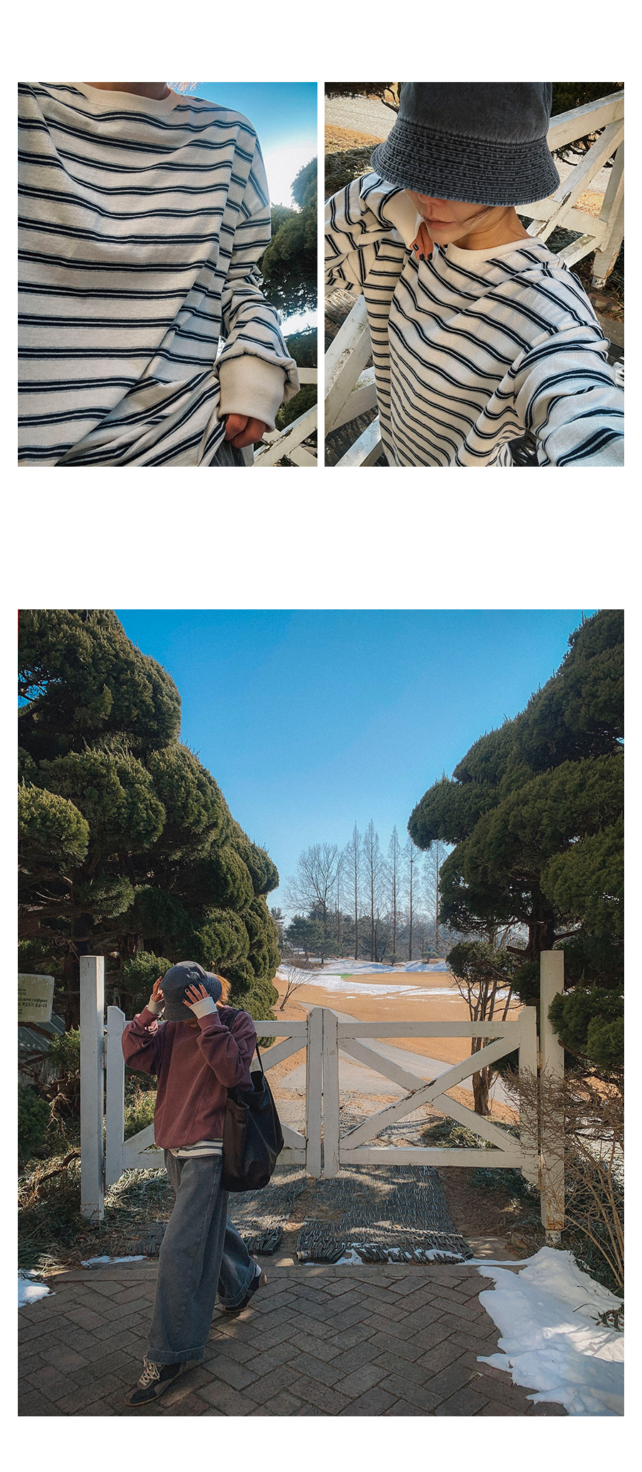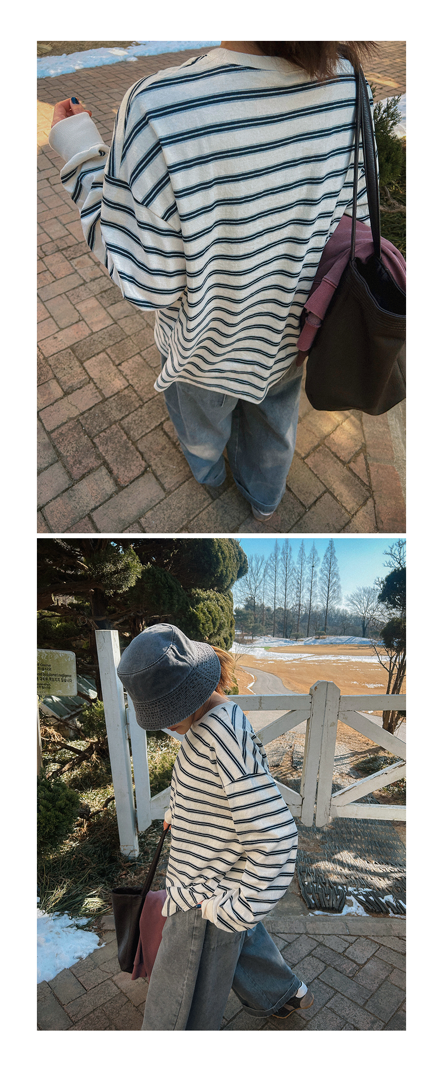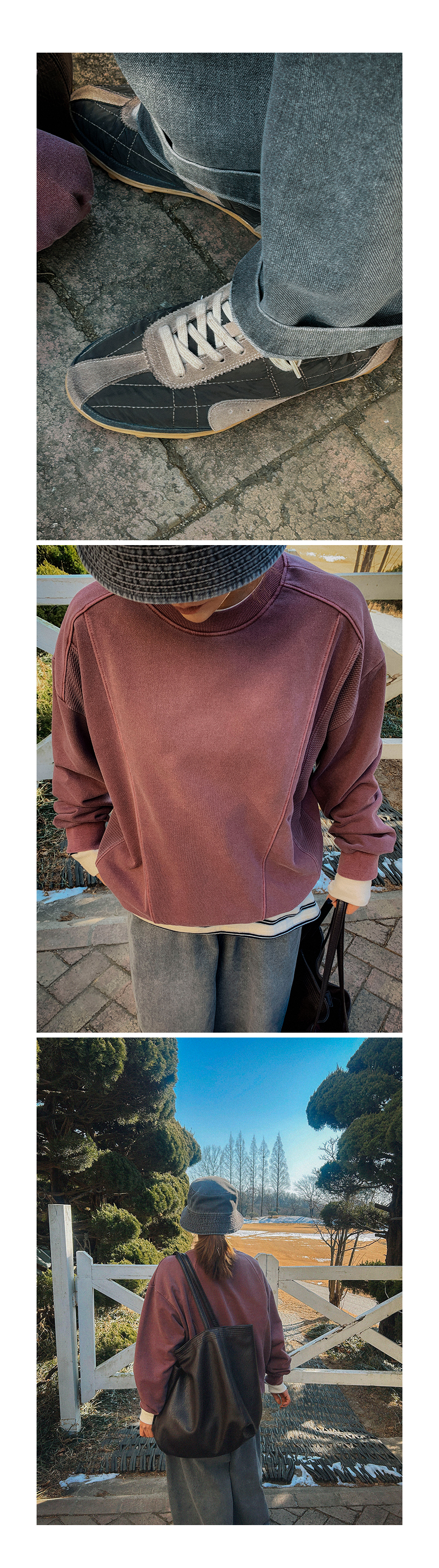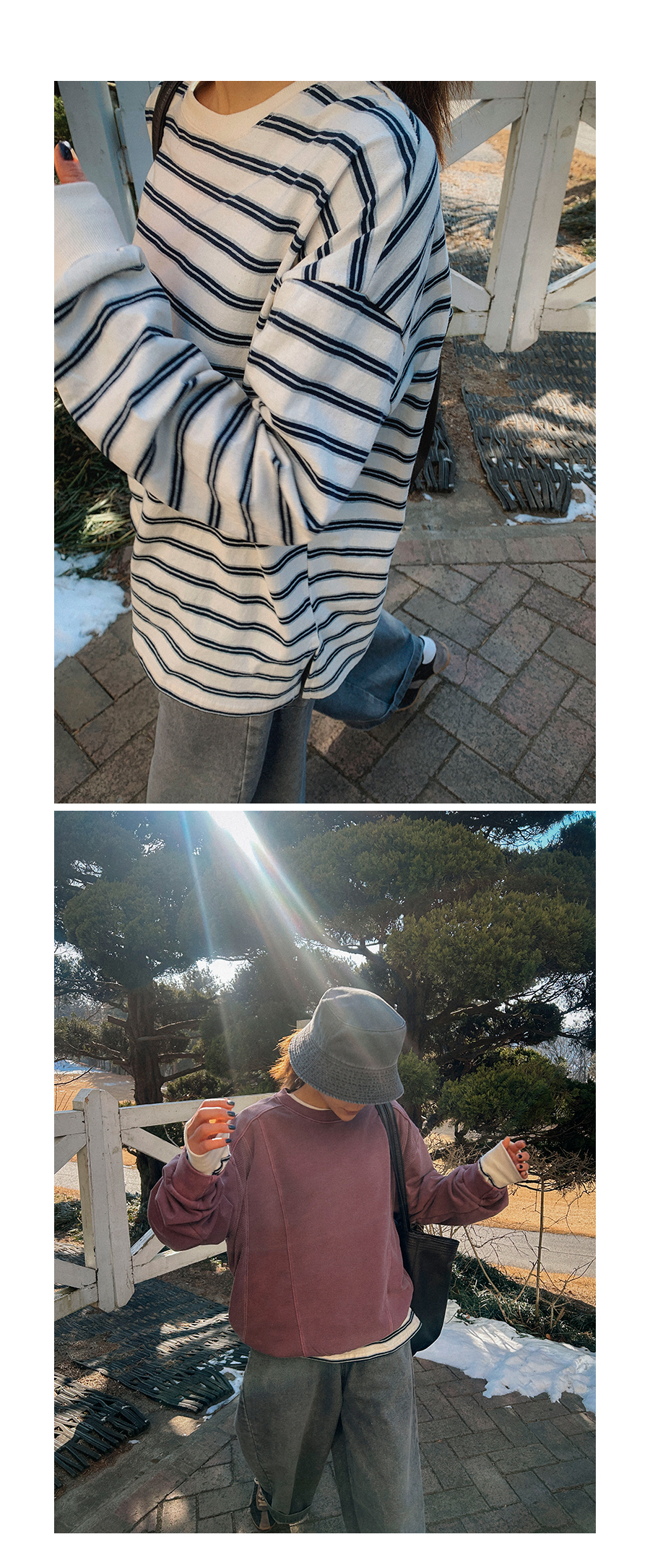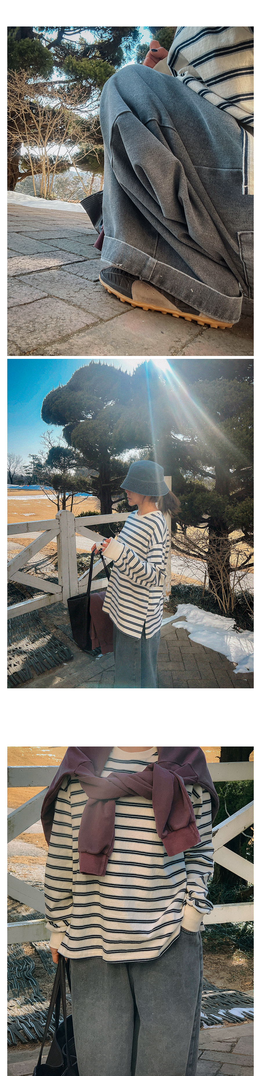 - 데님 소재 및 컬러감이 강한 의류의경우 밝은 소재(의류,가방,슈즈)와 함께 착용시 이염 가능성이 있을 수 있으니 주의하여 주세요.