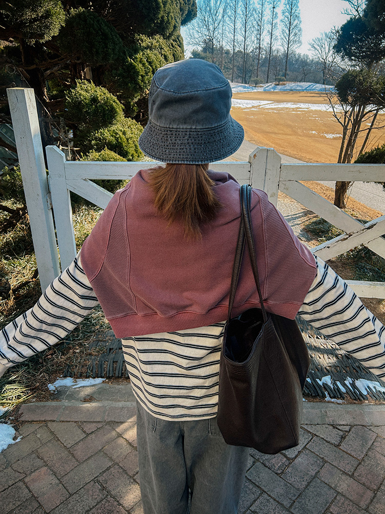 - 데님 소재 및 컬러감이 강한 의류의경우 밝은 소재(의류,가방,슈즈)와 함께 착용시 이염 가능성이 있을 수 있으니 주의하여 주세요.