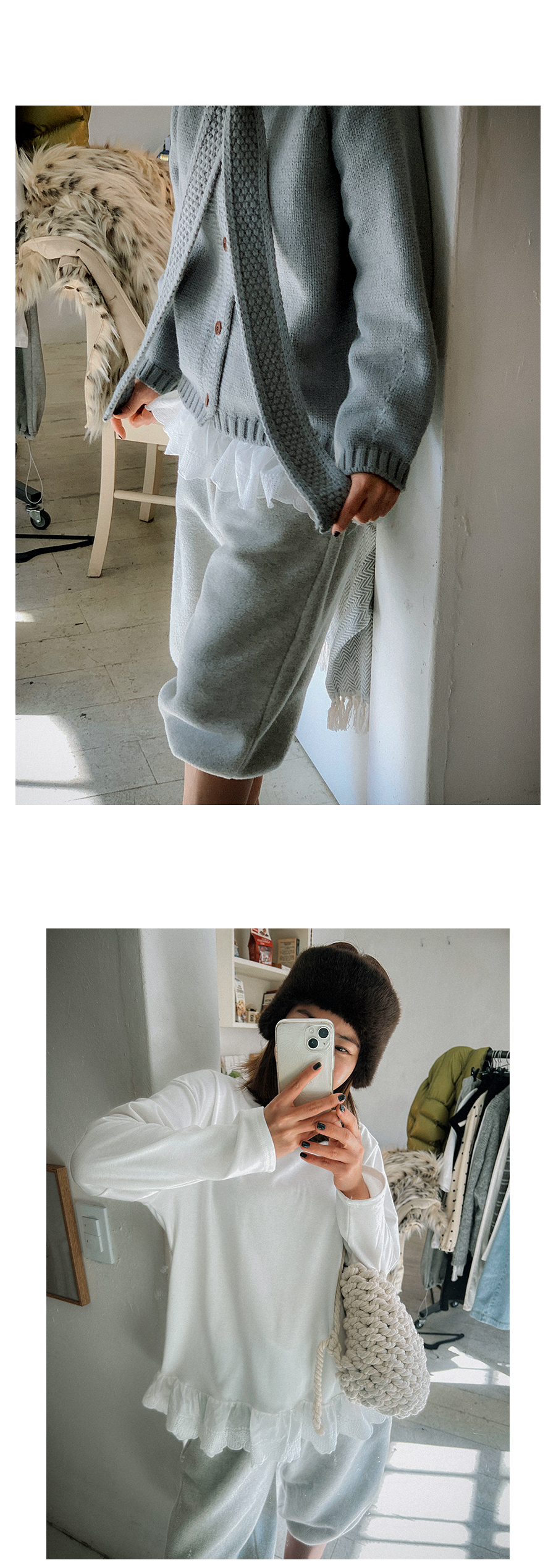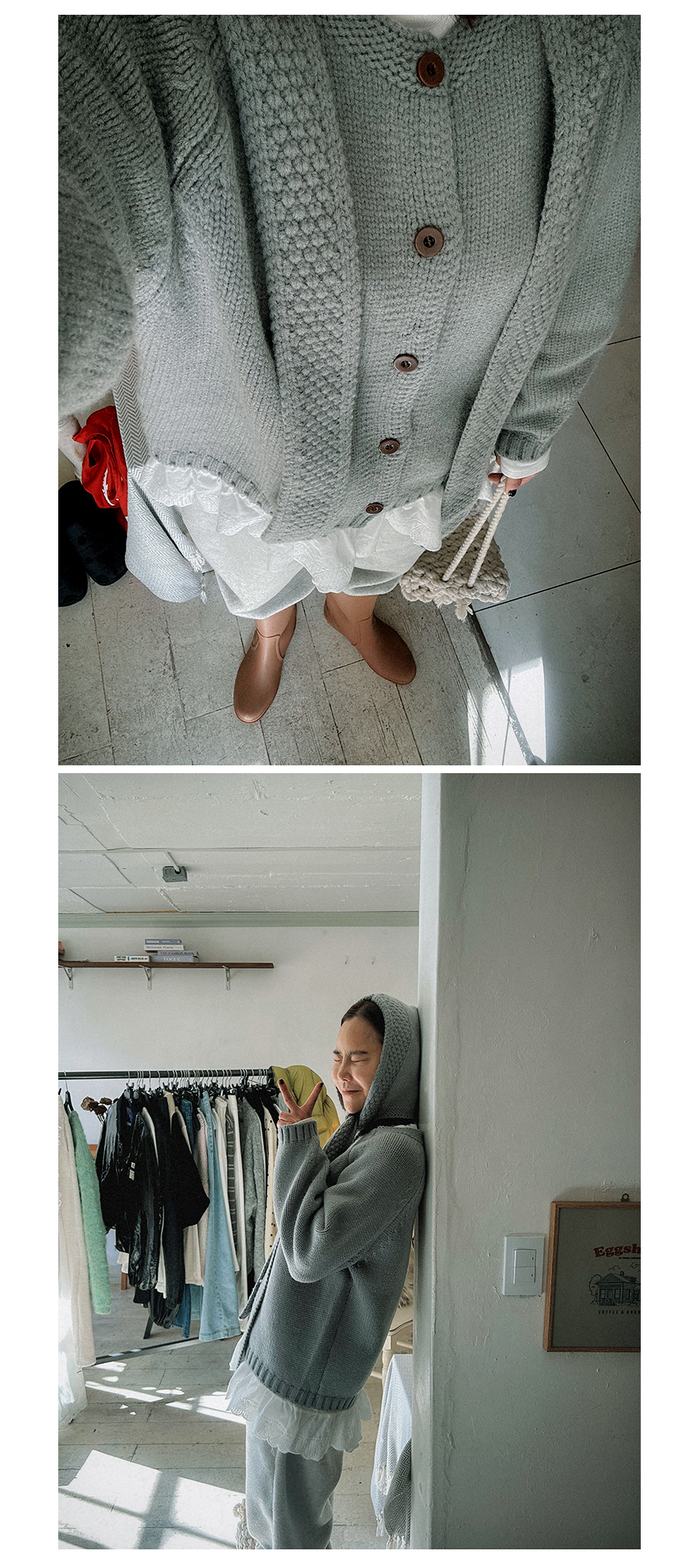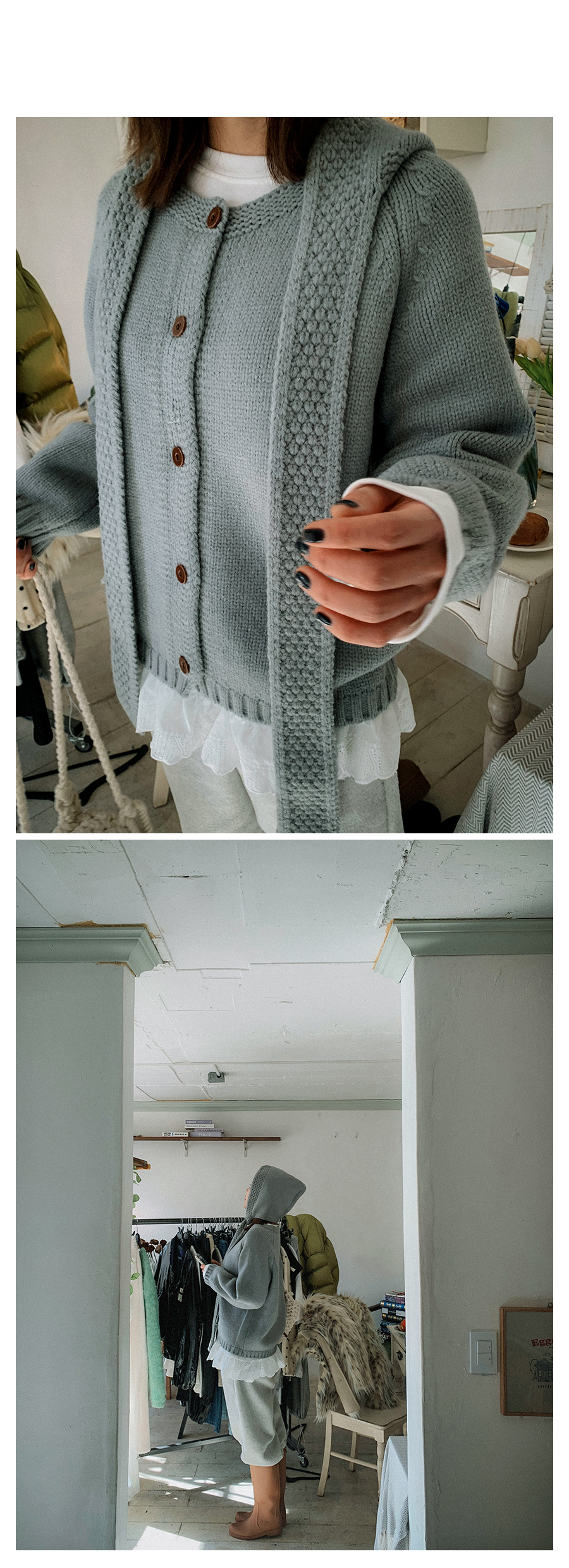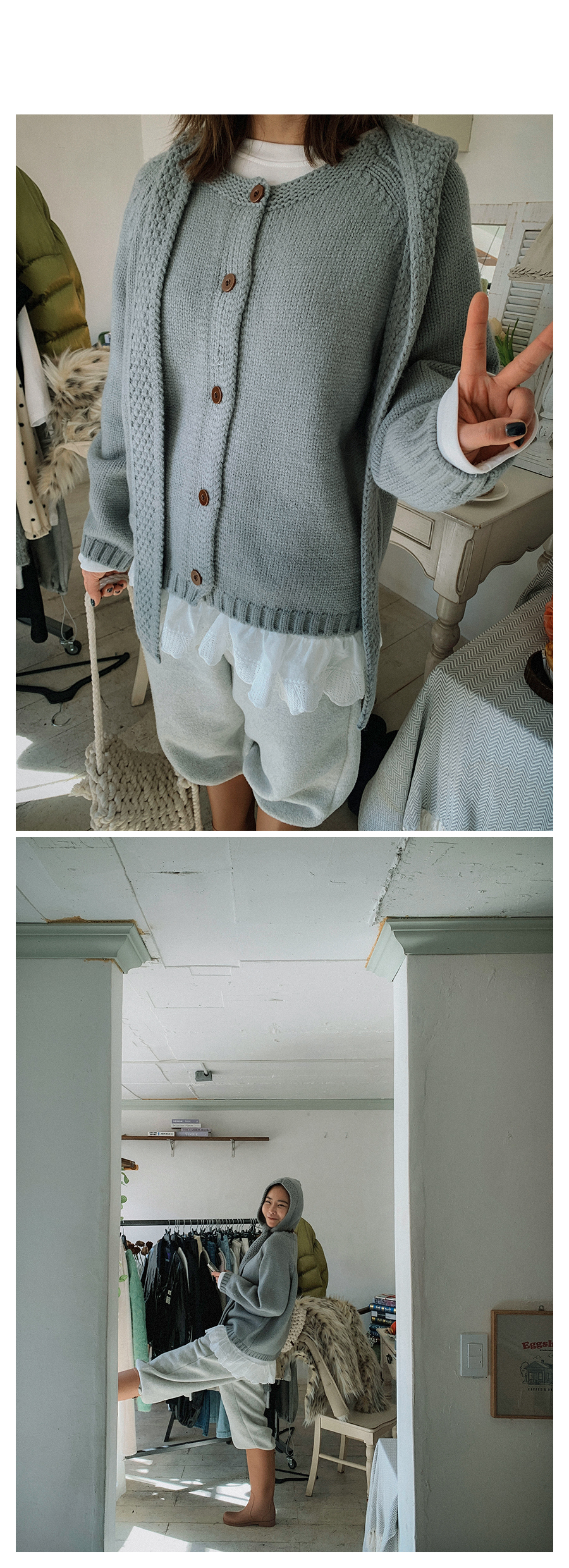 - 단추구멍이 작은 부분의 경우, 단추에 맞게 쪽가위로 터주셔서 착용부탁드립니다.