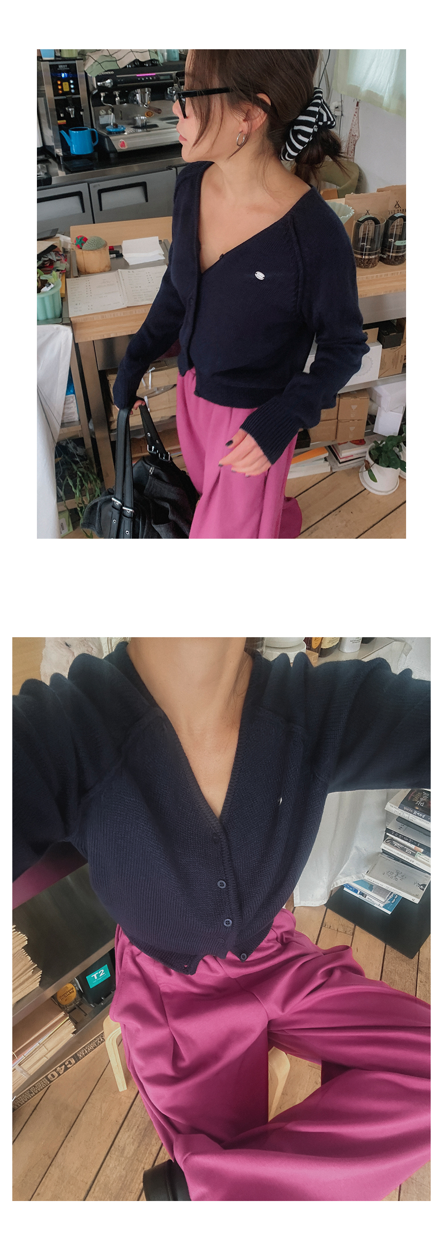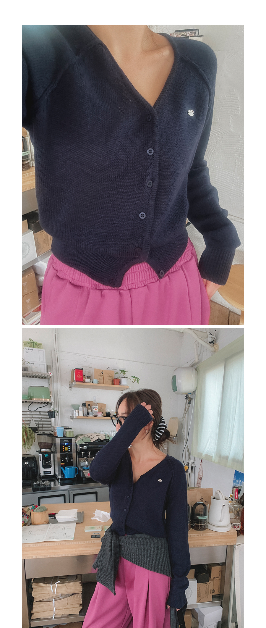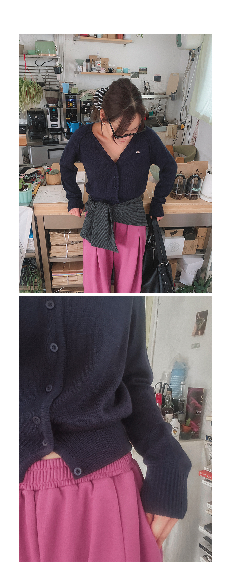 - 단추구멍이 작은 부분의 경우, 단추에 맞게 쪽가위로 터주셔서 착용부탁드립니다.