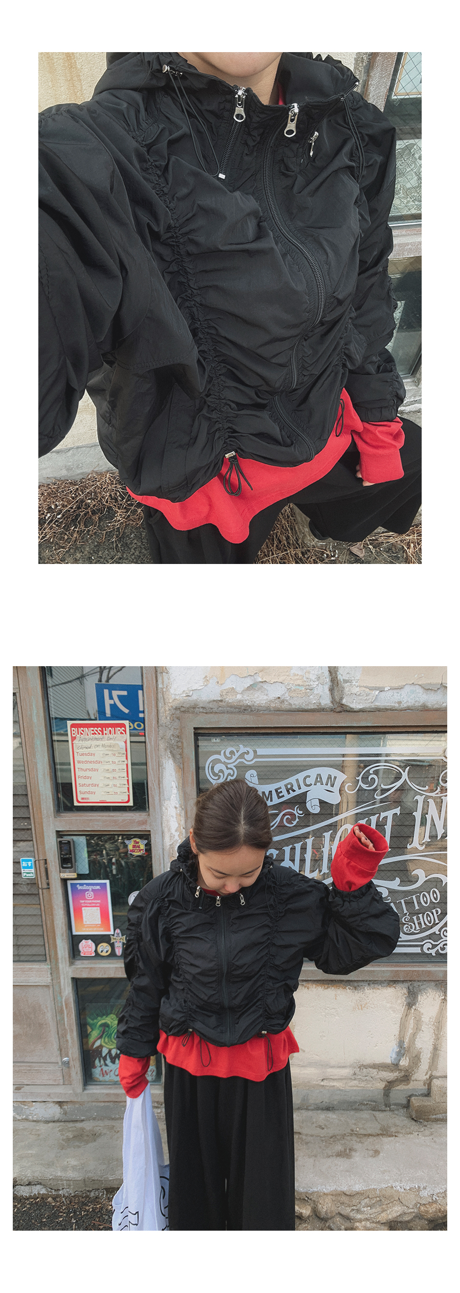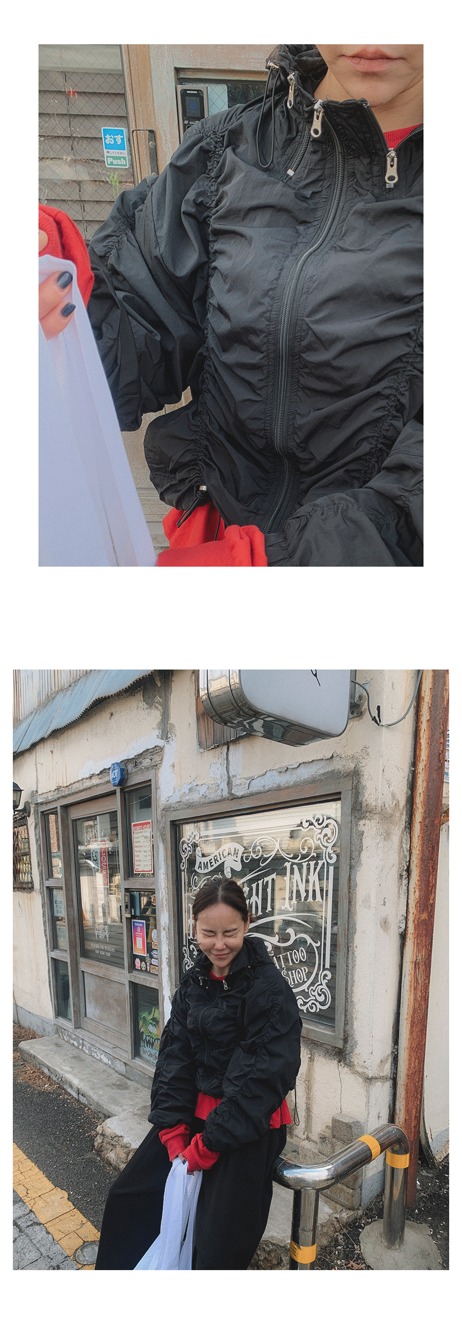 - 단추구멍이 작은 부분의 경우, 단추에 맞게 쪽가위로 터주셔서 착용부탁드립니다.