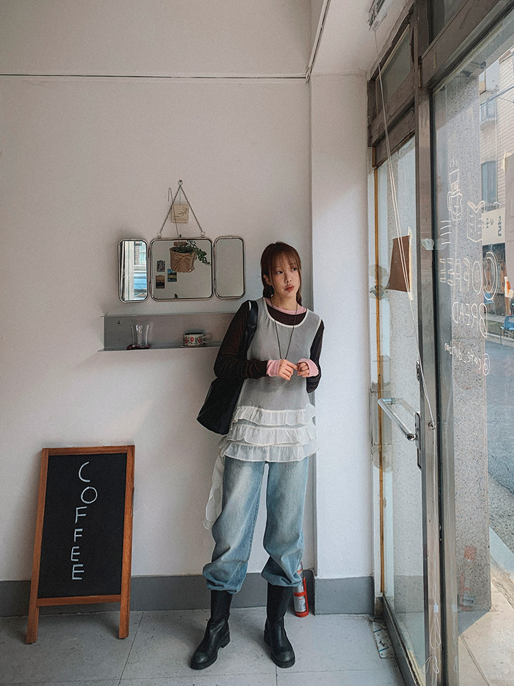 MODEL_HEIGHT 163cm l WEIGHT 45kg l TOP 44-55size l BOTTOM 26inch l SHOES 230mm