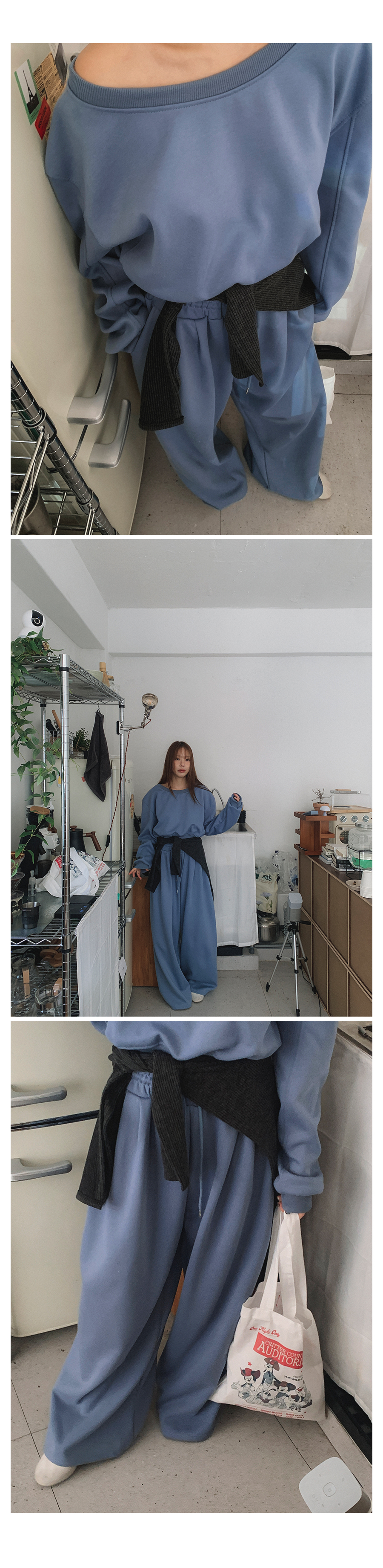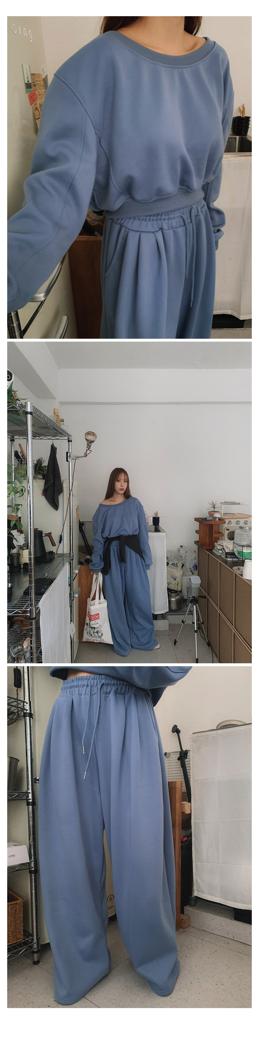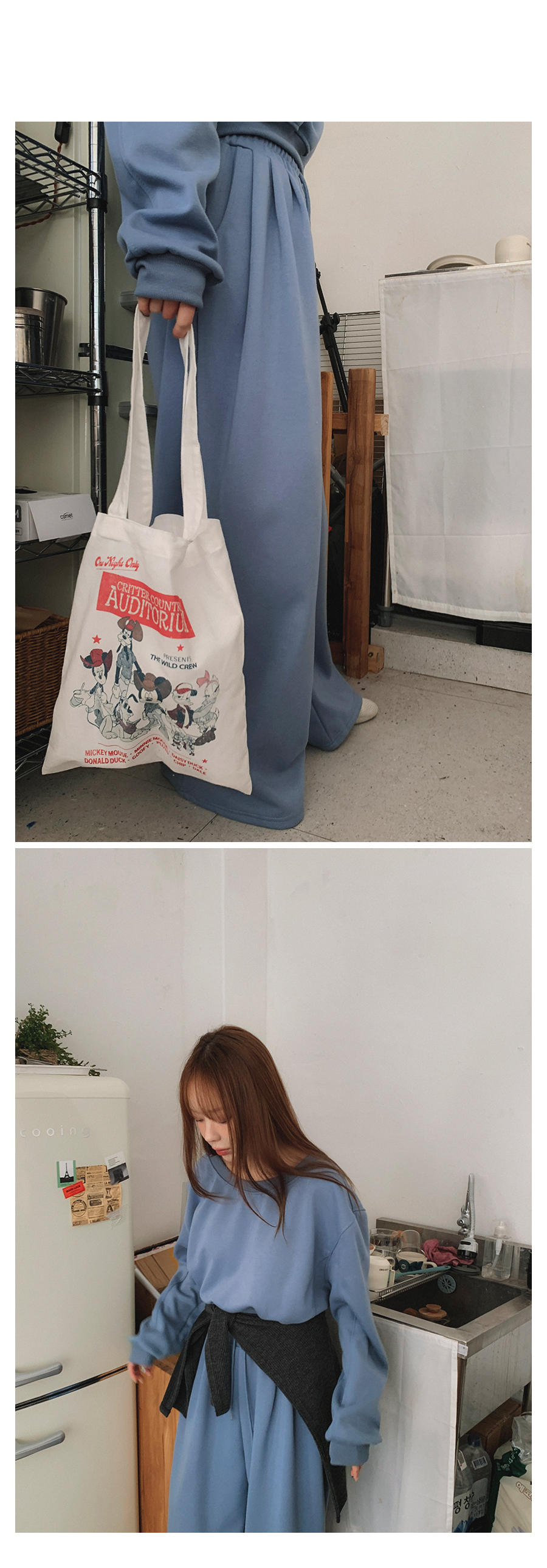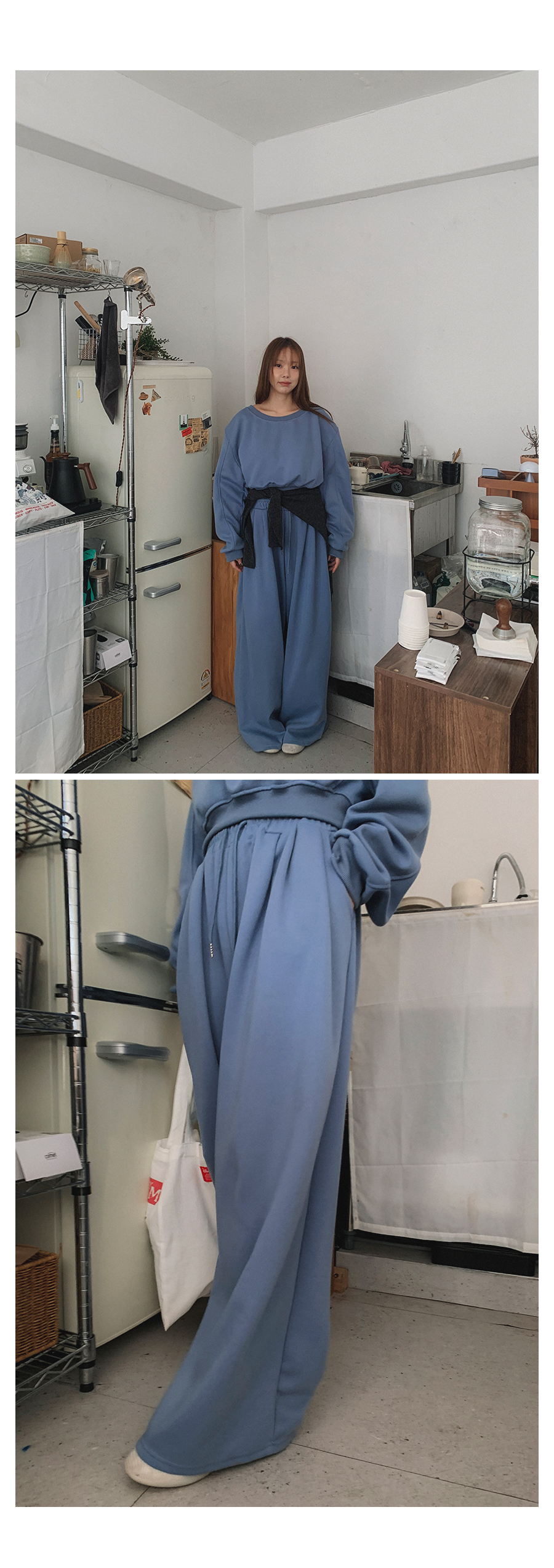 하의 FREE 총장 100.5 / 허리 30(밴딩) / 엉덩이 50.5 / 허벅지 40 / 밑위 38.5 / 밑단 34