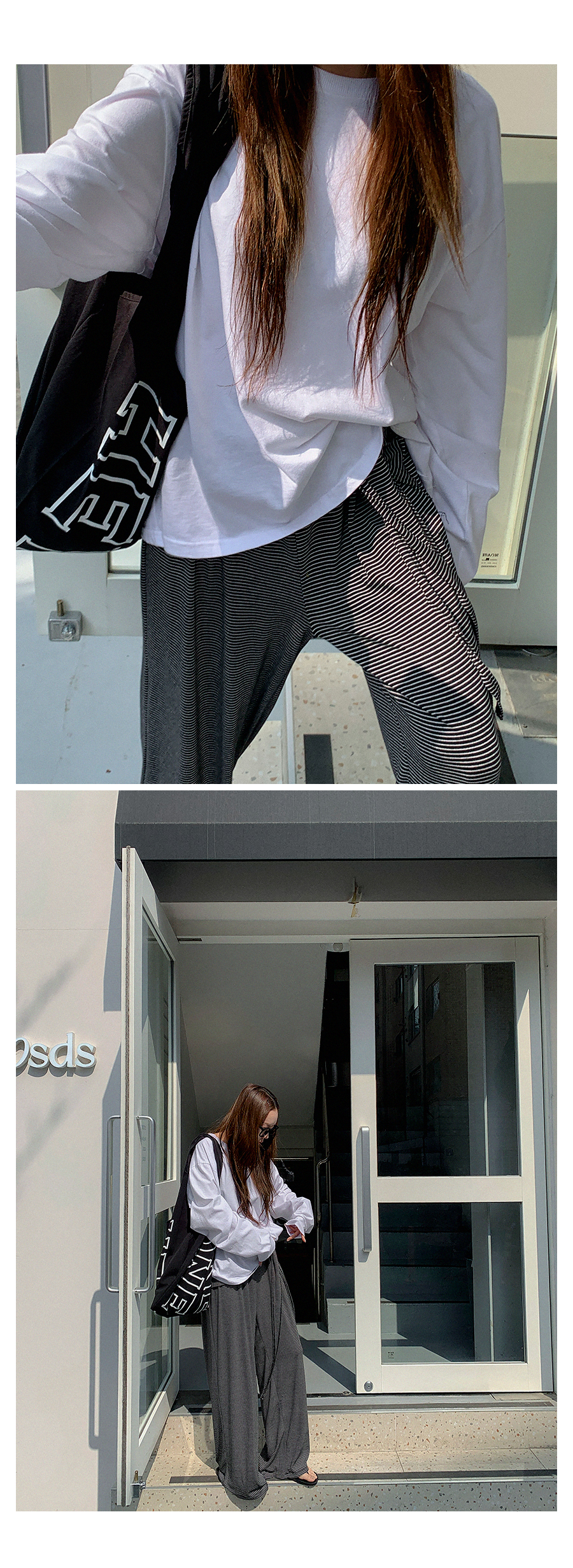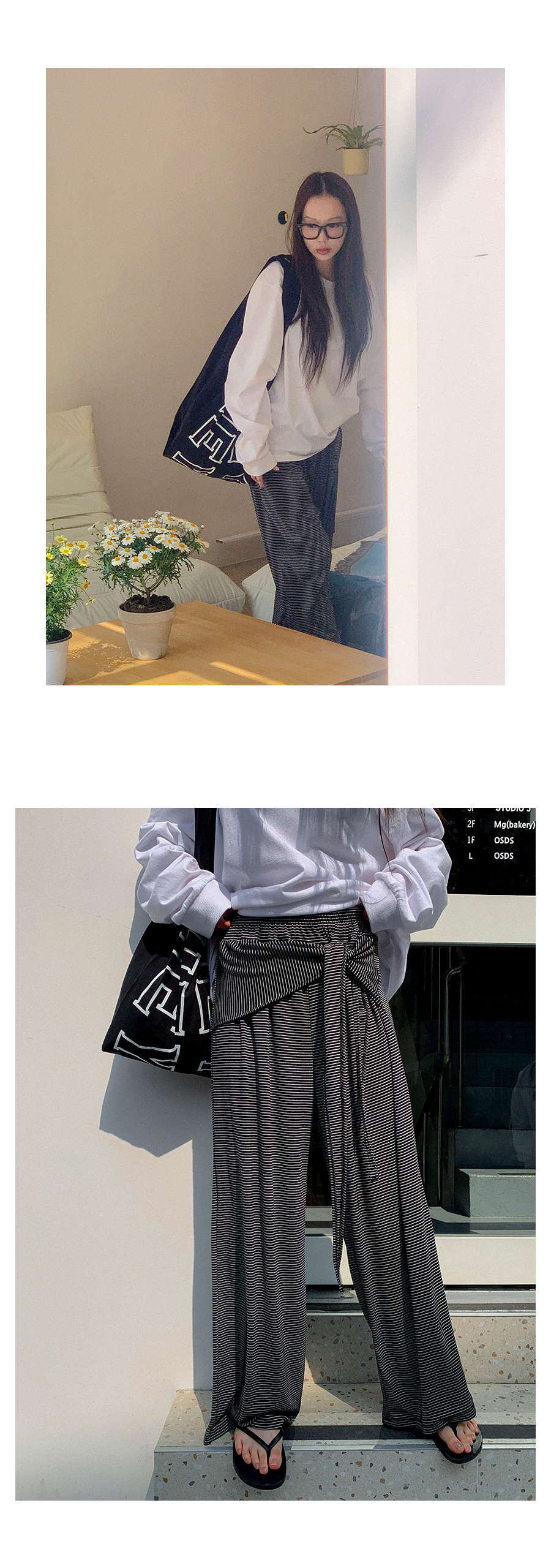 MODEL_HEIGHT 163cm l WEIGHT 45kg l TOP 44-55size l BOTTOM 26inch l SHOES 230mm