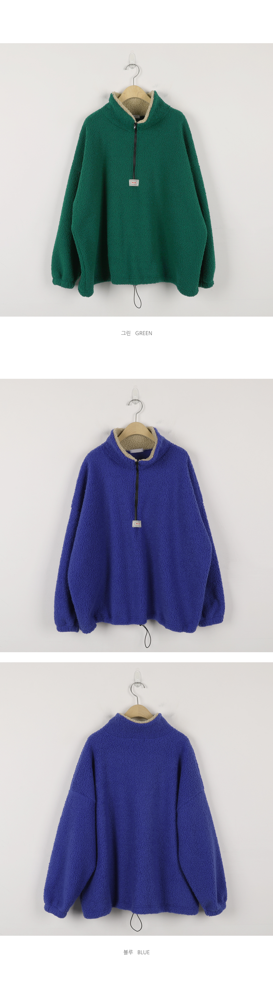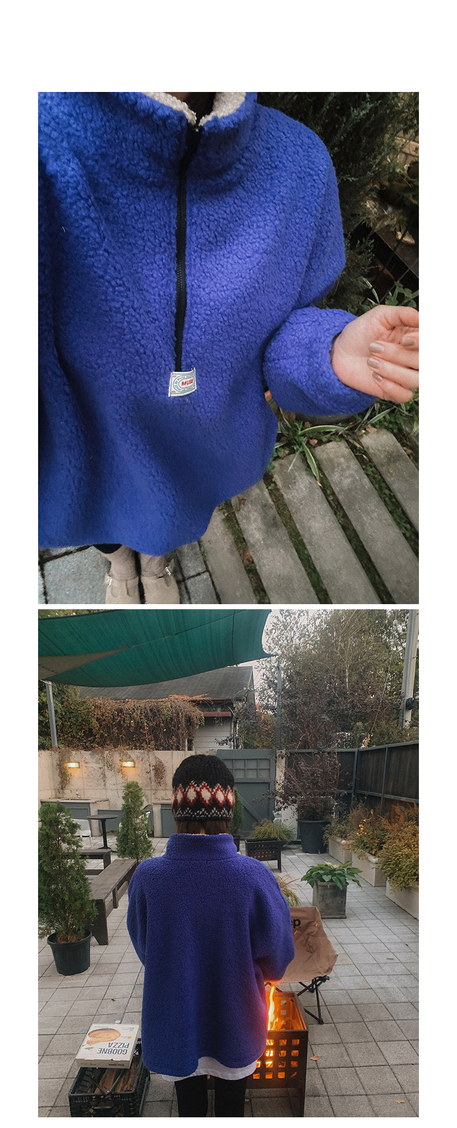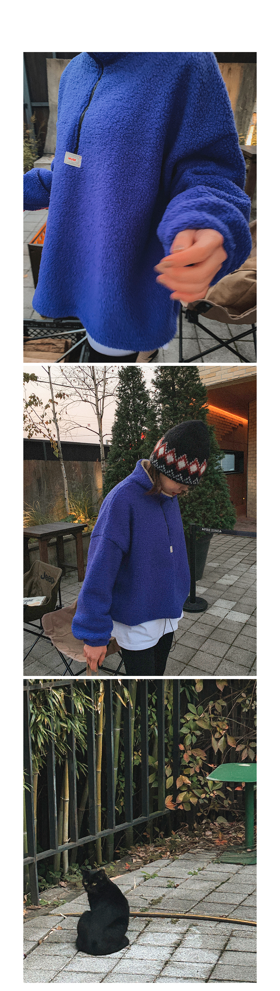 뽀글이 반집업 맨투맨 소개 해드릴게요. 폭닥한 원단으로 높은 보온성이라, 단독으로도 부담없이 즐겨 진답니다. 미니멀한 앞 패치 포인트도 더해주고 기장감이나 품도 넉넉해서 실루엣 부각 없이 웨어러블하게 입기 좋은 아웃핏이니 적극 소장 추천 드릴게요:)
