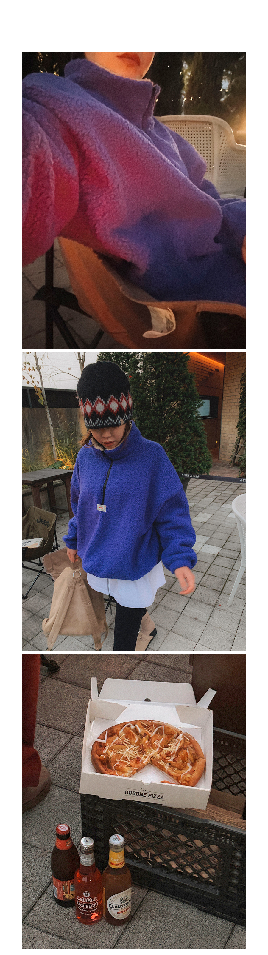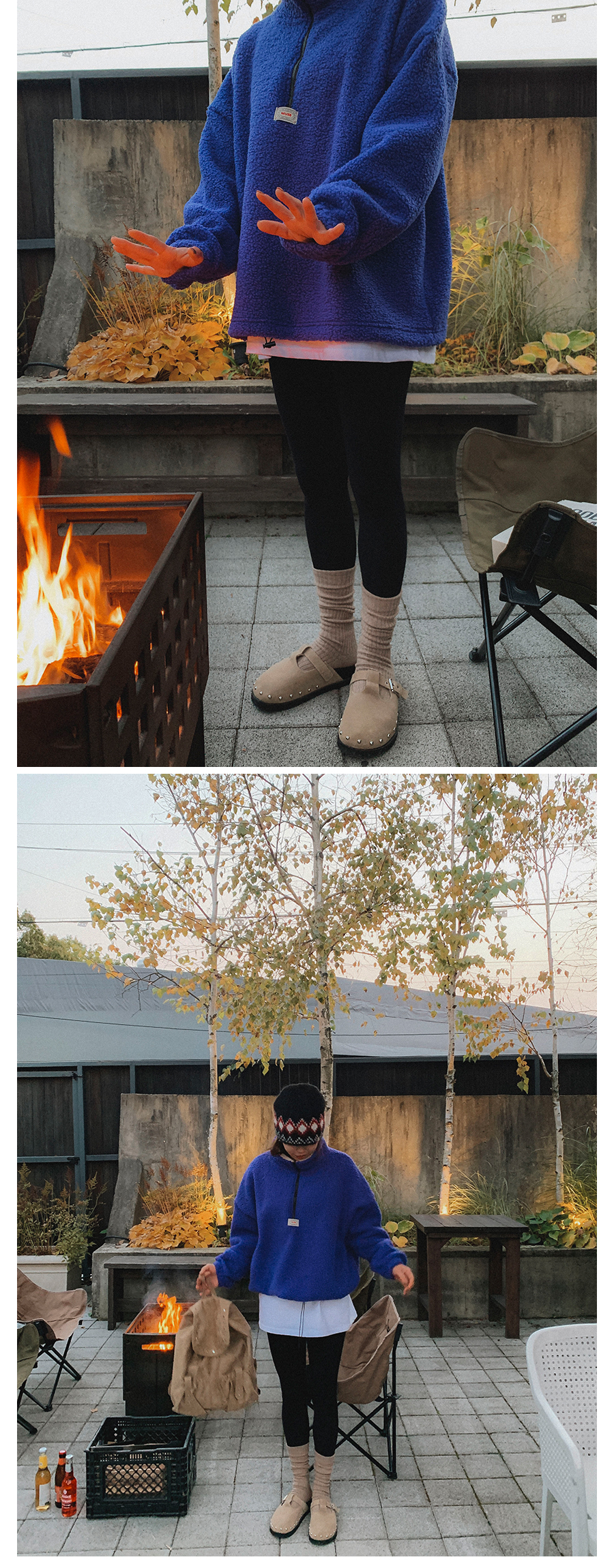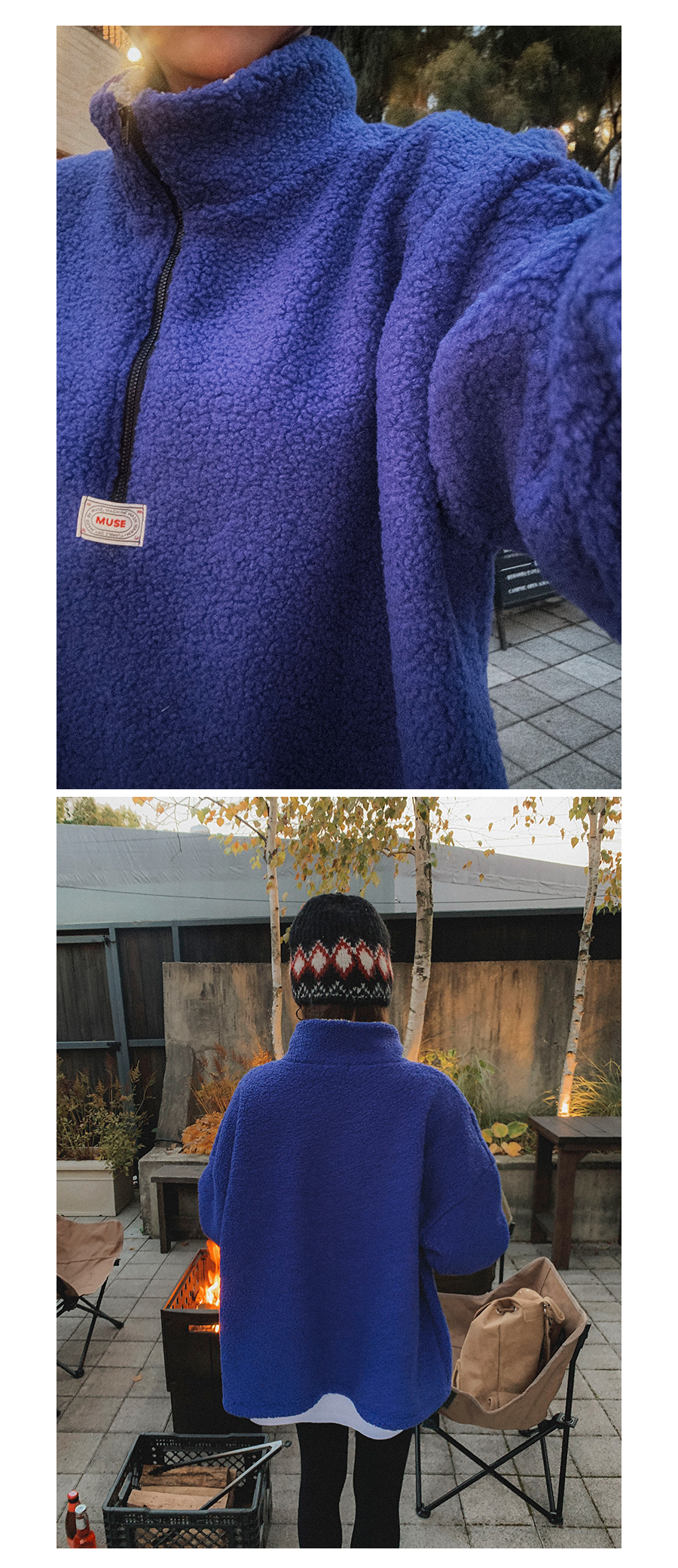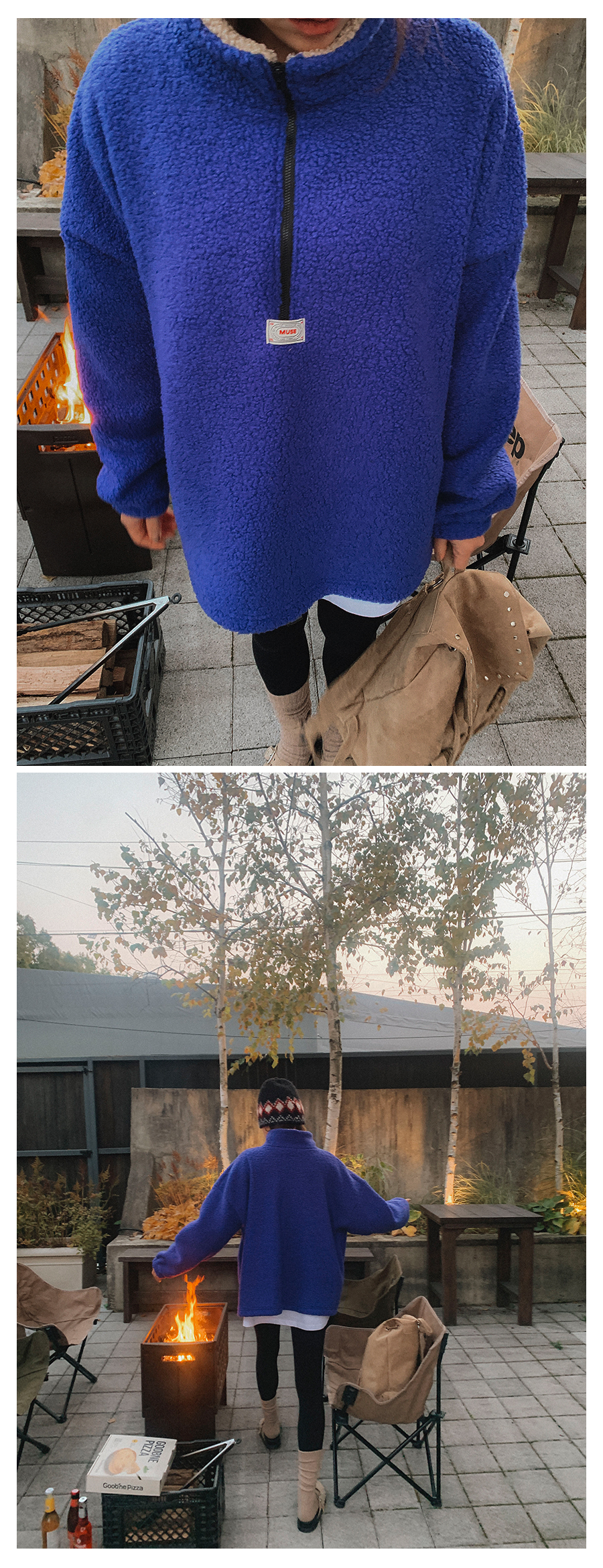 뽀글이 반집업 맨투맨 소개 해드릴게요. 폭닥한 원단으로 높은 보온성이라, 단독으로도 부담없이 즐겨 진답니다. 미니멀한 앞 패치 포인트도 더해주고 기장감이나 품도 넉넉해서 실루엣 부각 없이 웨어러블하게 입기 좋은 아웃핏이니 적극 소장 추천 드릴게요:)