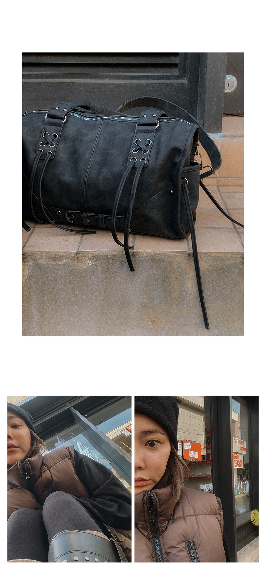 - 데님 소재 및 컬러감이 강한 의류의경우 밝은 소재(의류,가방,슈즈)와 함께 착용시 이염 가능성이 있을 수 있으니 주의하여 주세요.