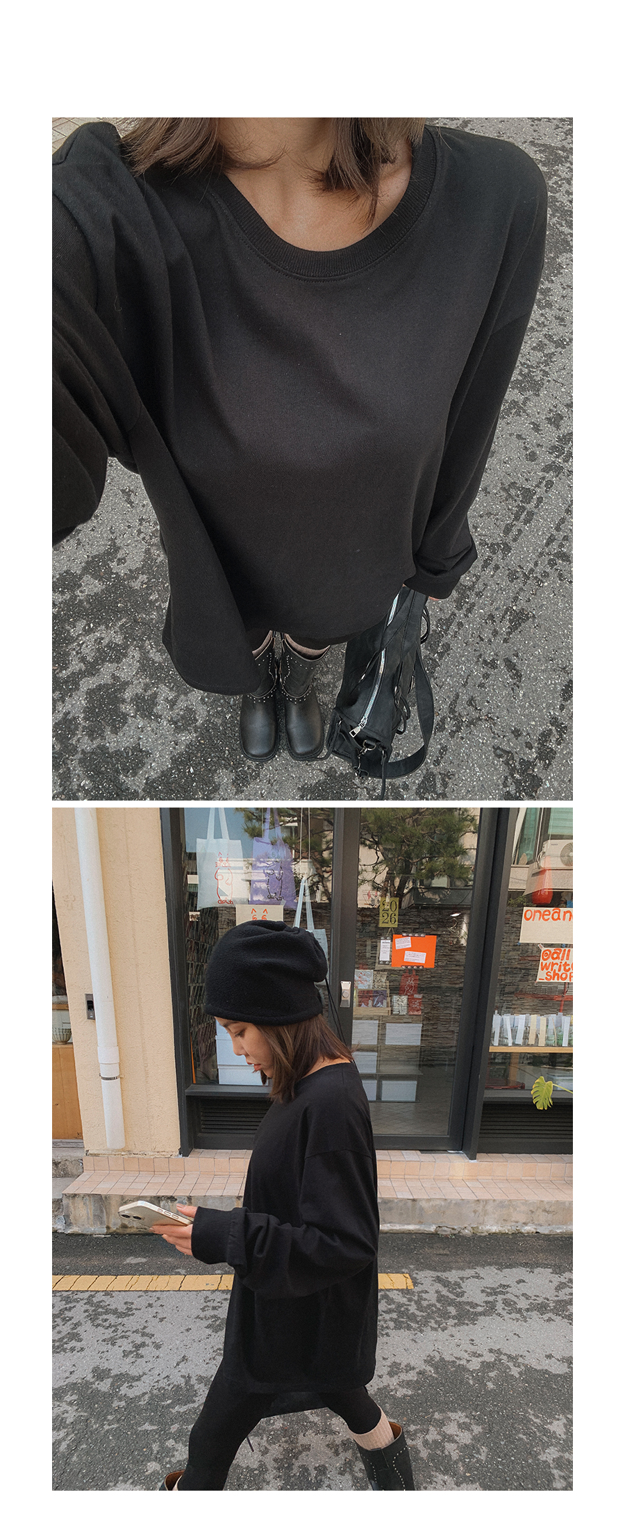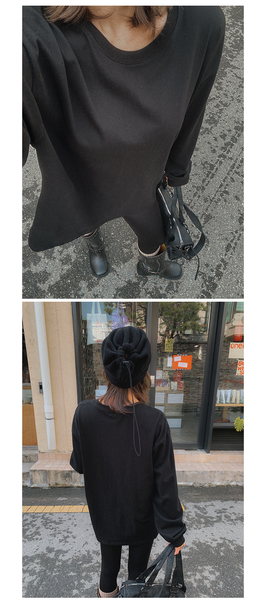 비침 X l 신축성 O l 두께감 △ l 안감 기모 l 광택 X
