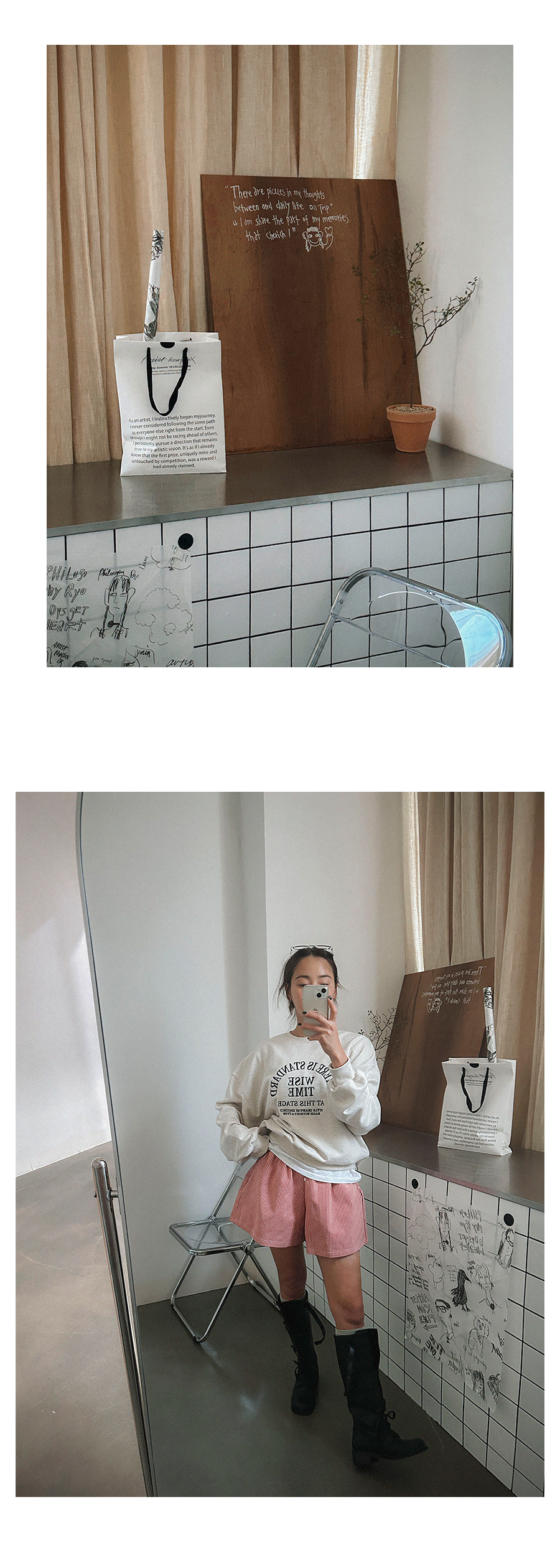 HANA _ HEIGHT 165cm l TOP 44-55size l BOTTOM 25-26inch l SHOES 235mm