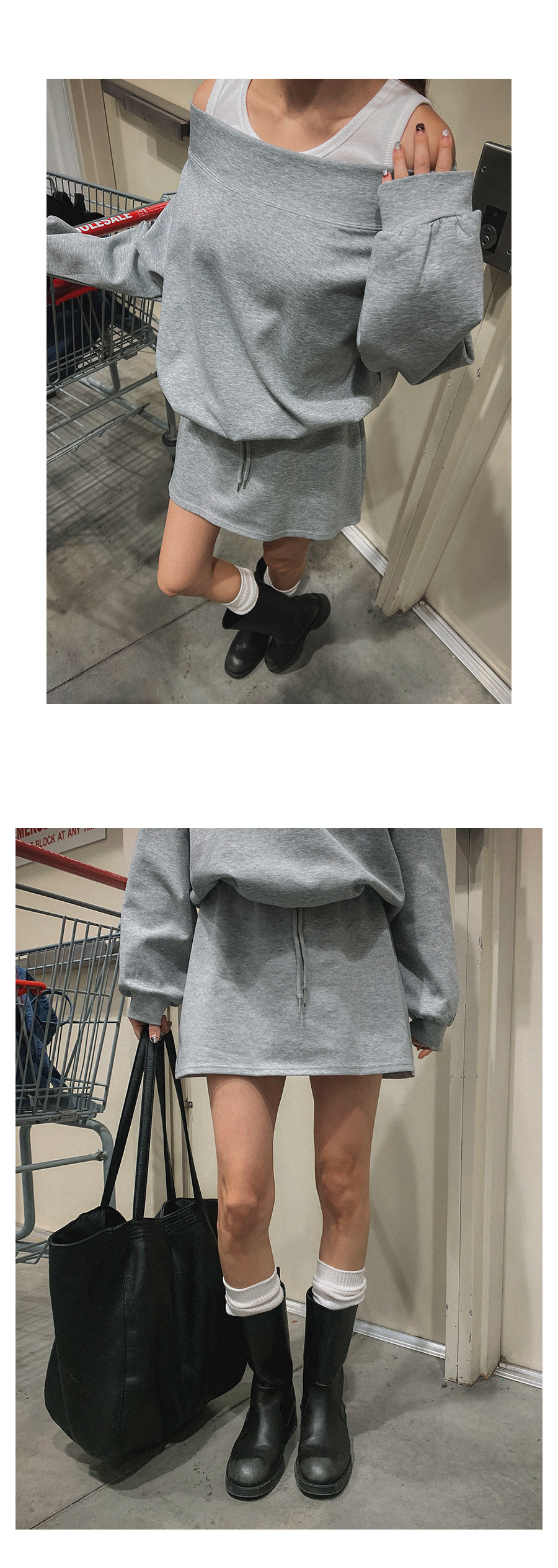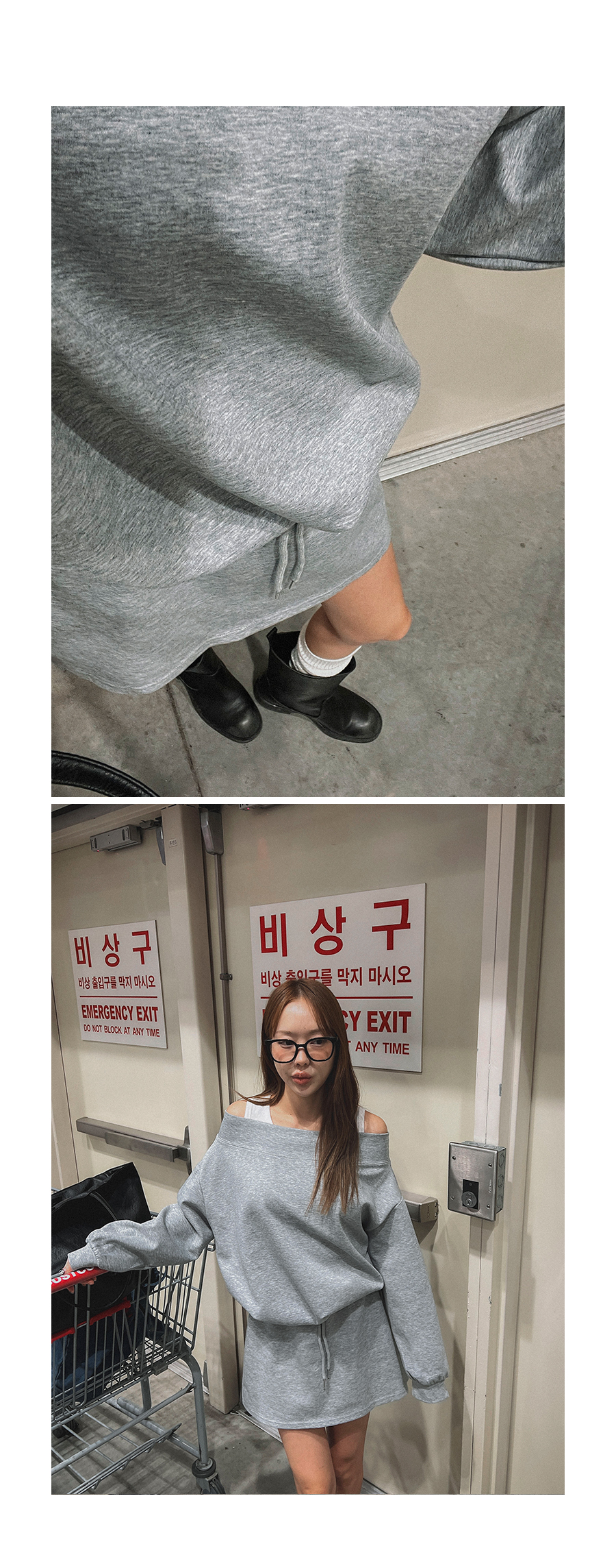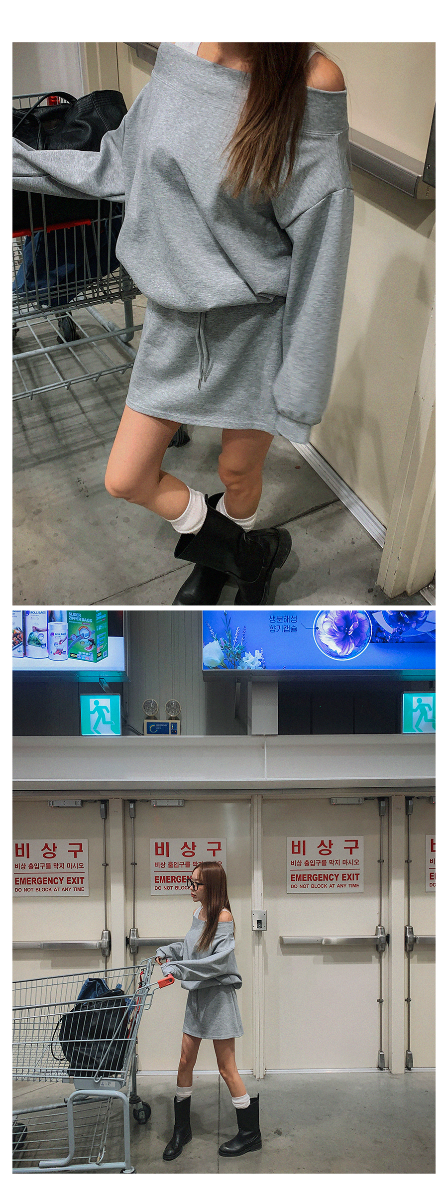 MODEL_HEIGHT 163cm l WEIGHT 45kg l TOP 44-55size l BOTTOM 26inch l SHOES 230mm